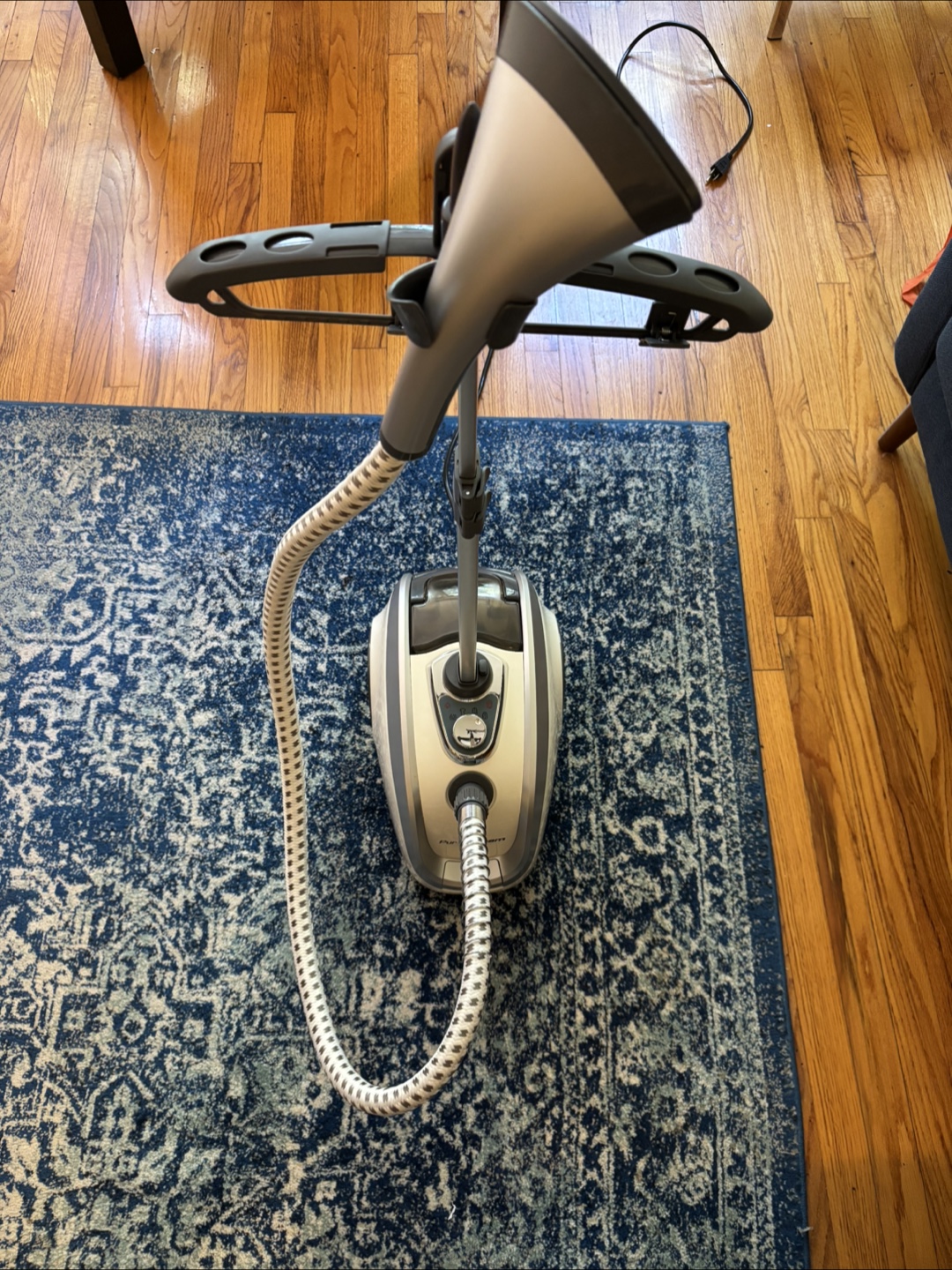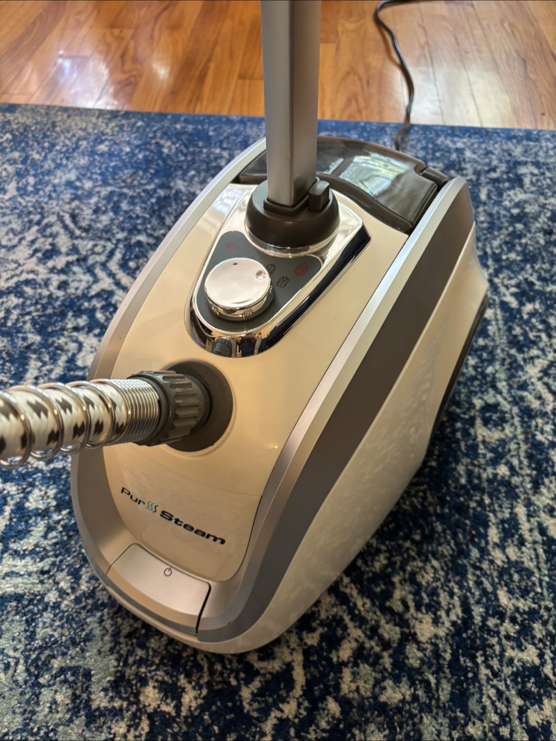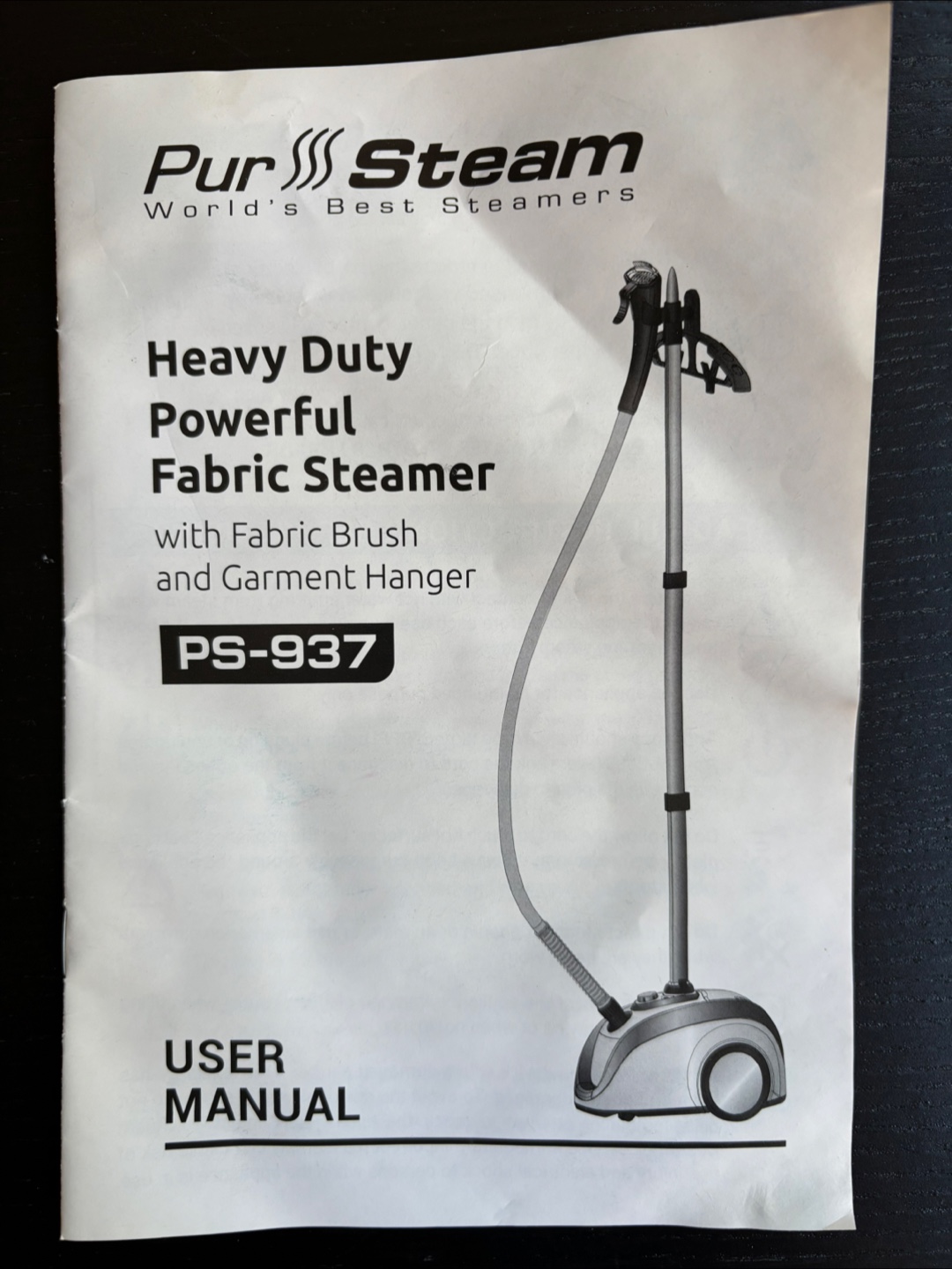 Selling a PurSteam PS-937 heavy duty fabric steamer. It's in great condition and ready to help you keep your clothes looking their best! It comes with a fabric brush and garment hanger.