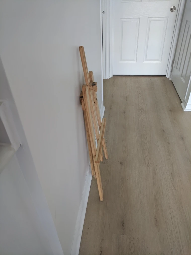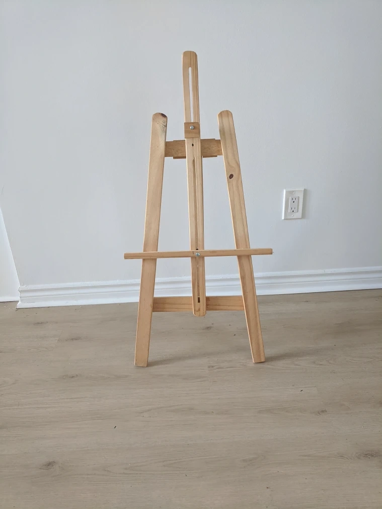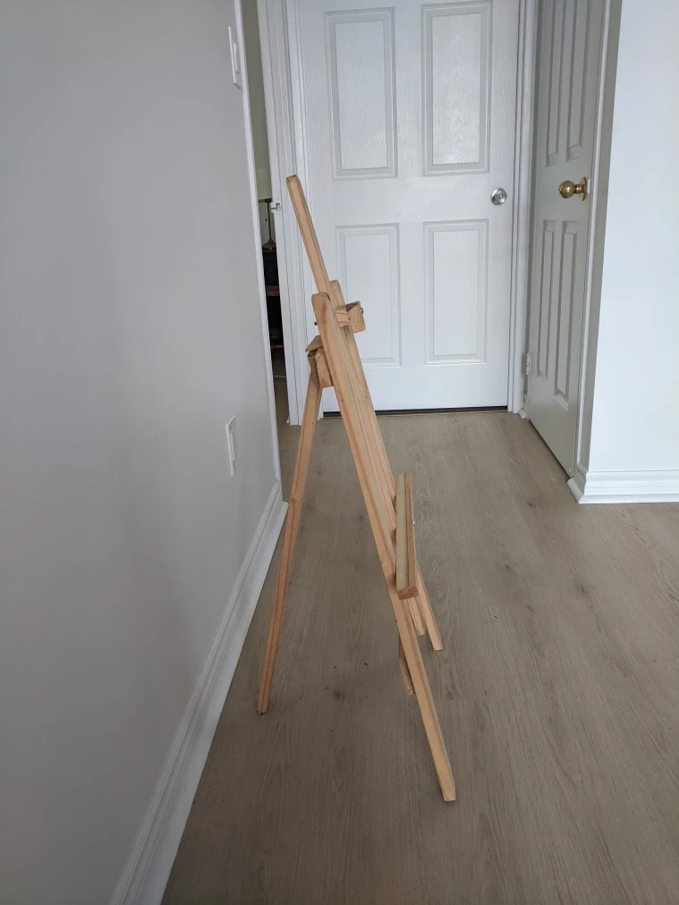 This lightly used wooden easel is perfect for kids artists of all levels, providing a stable and adjustable platform for painting and drawing. It's lightweight and easy to store, making it ideal for home studios or art classes. Here are its specs: * Material: Wood * Adjustable height * Lightweight and portable Pick up at 195 Merton Street Toronto Or pick up at Subway station Davisville. And I can deliver it to your house but you need to pay me another $3. Thanks.