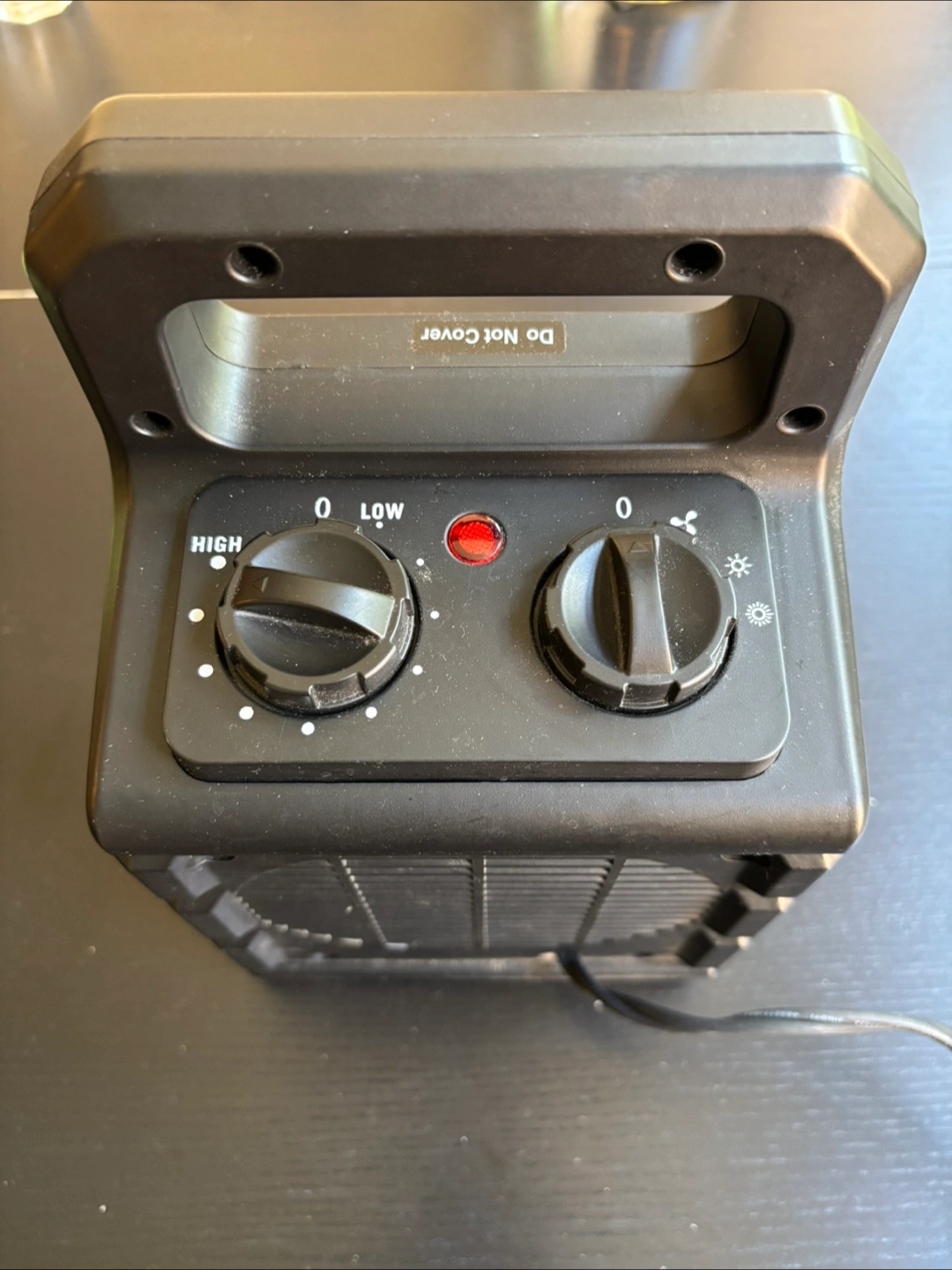 Selling an OPOLAR PTC Ceramic Heater, model HE03. It's a 120V AC 60Hz heater, made for household use. It has a high and low setting, and a safety to turn it off if it gets knocked back.