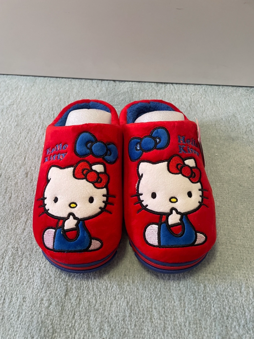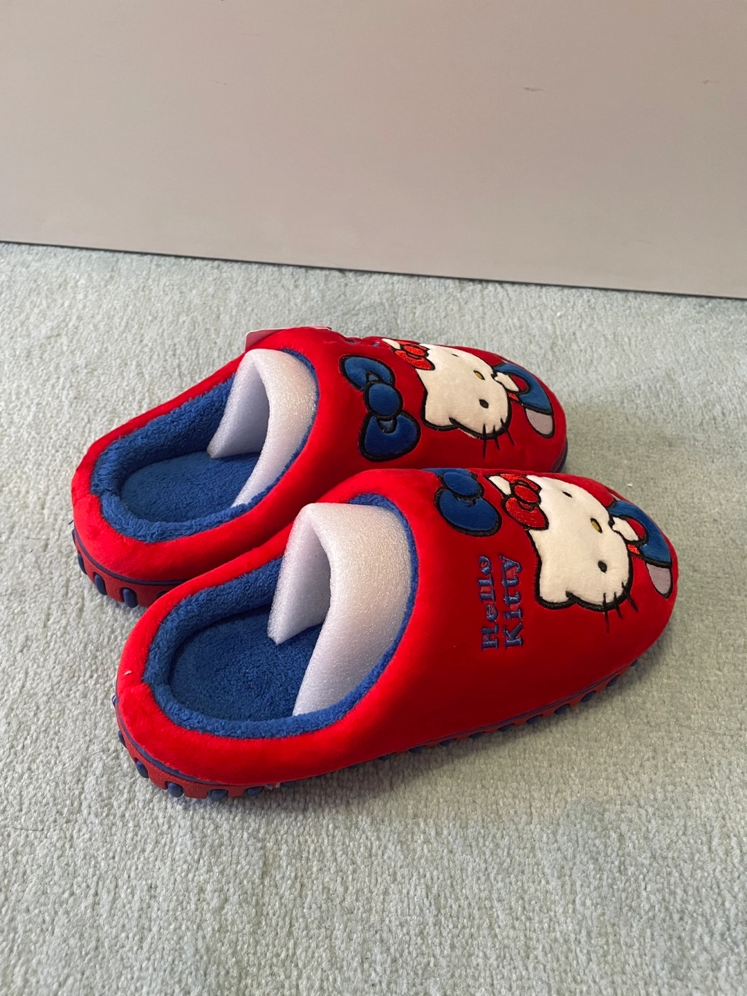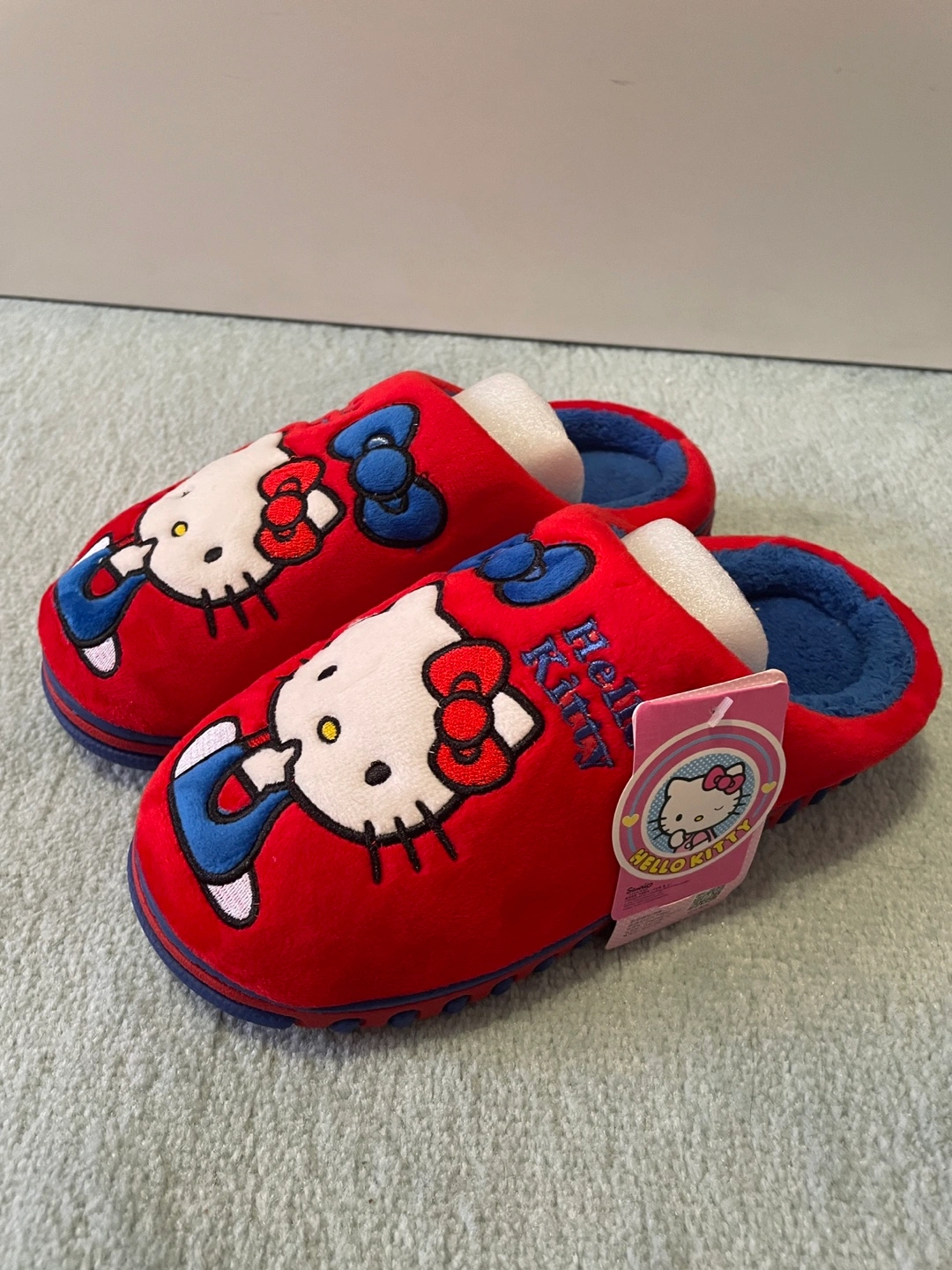 These adorable Hello Kitty slippers are in excellent condition! They're red with a cute Hello Kitty design. Perfect for keeping your feet cozy and stylish around the house.