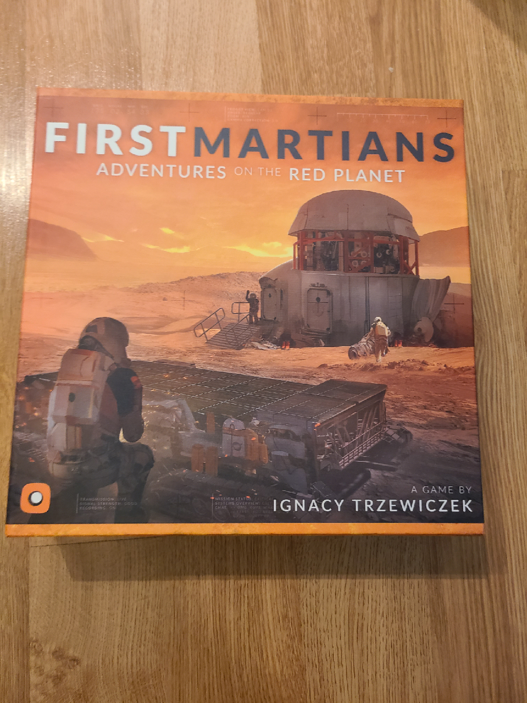 Selling the board game First Martians: Adventures on the Red Planet. It's a cooperative game where you and your friends are the first colonists on Mars! You'll need to explore the planet, maintain your base, research Martian samples, and survive!