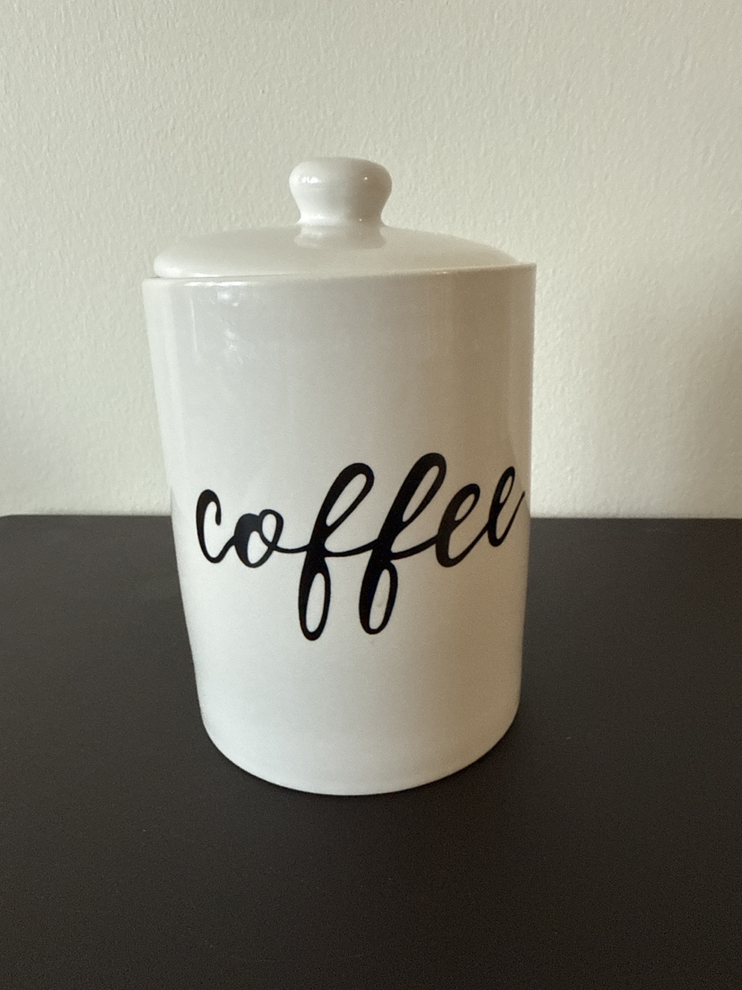 Selling a cute white ceramic coffee canister. It's in great shape and perfect for storing your favourite coffee beans or ground coffee. The canister comes with a lid to keep your coffee fresh