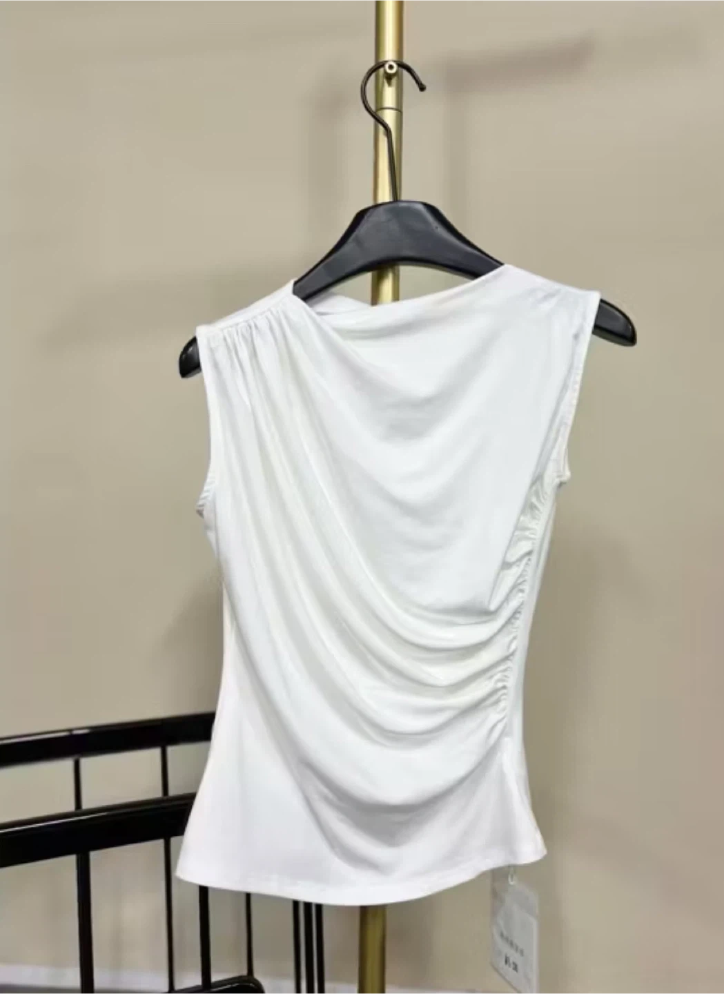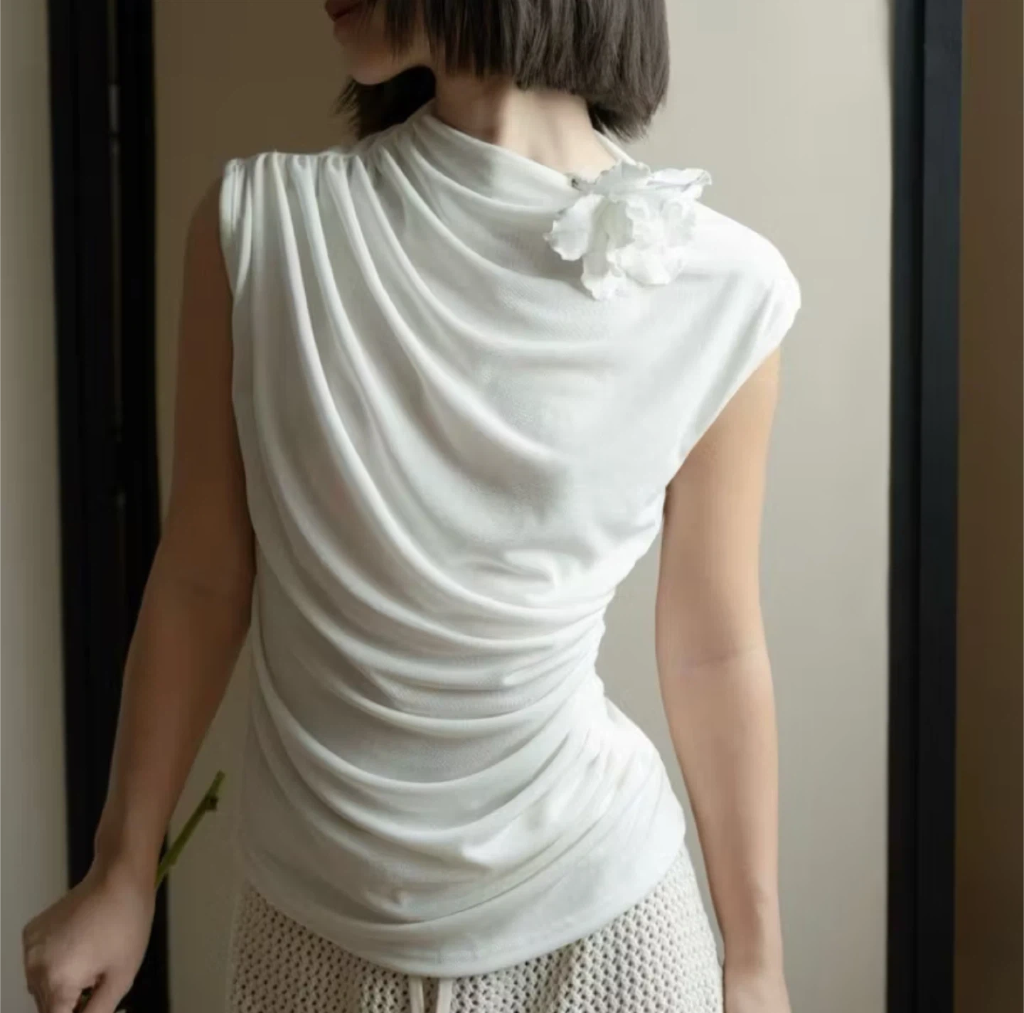 15Selling a stylish white sleeveless top with a unique draped design. It's in great condition and perfect for dressing up or down!