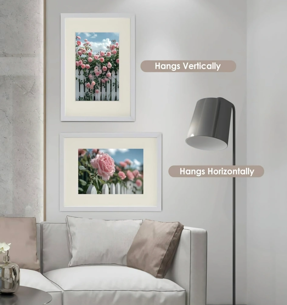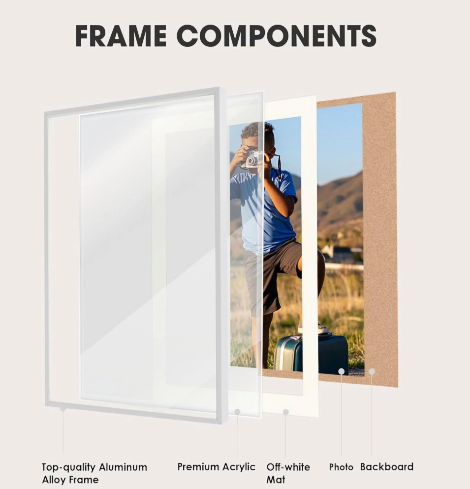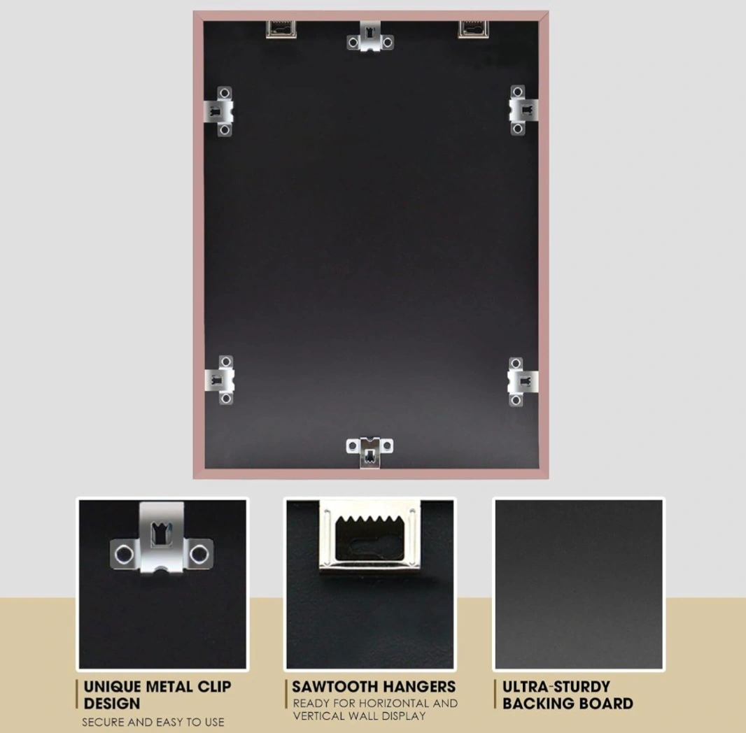 12X16 Picture Frame, Display Poster 8X12 With Mat or 12X16 Without Mat. Photo Frames with Strong Corner for Gallery Wall. Comes with multiple uniquely designed metal clips for securely holding photos, posters, or certificates. Can be hung vertically or horizontally on the wall, offering flexible display options for any space.