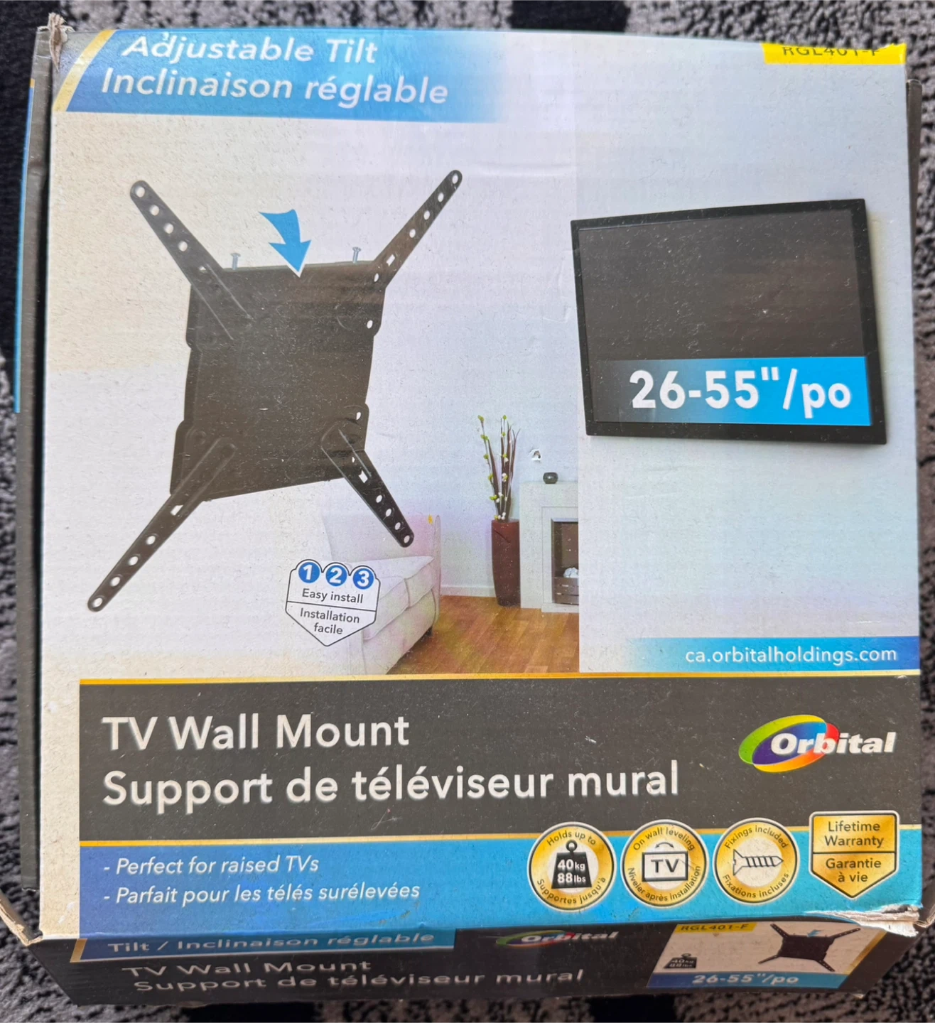 Selling an Orbital TV Wall Mount, perfect for TVs ranging from 26 to 55 inches! It's designed for raised TVs and features an adjustable tilt. The box includes all the necessary fixings. Easy to install!