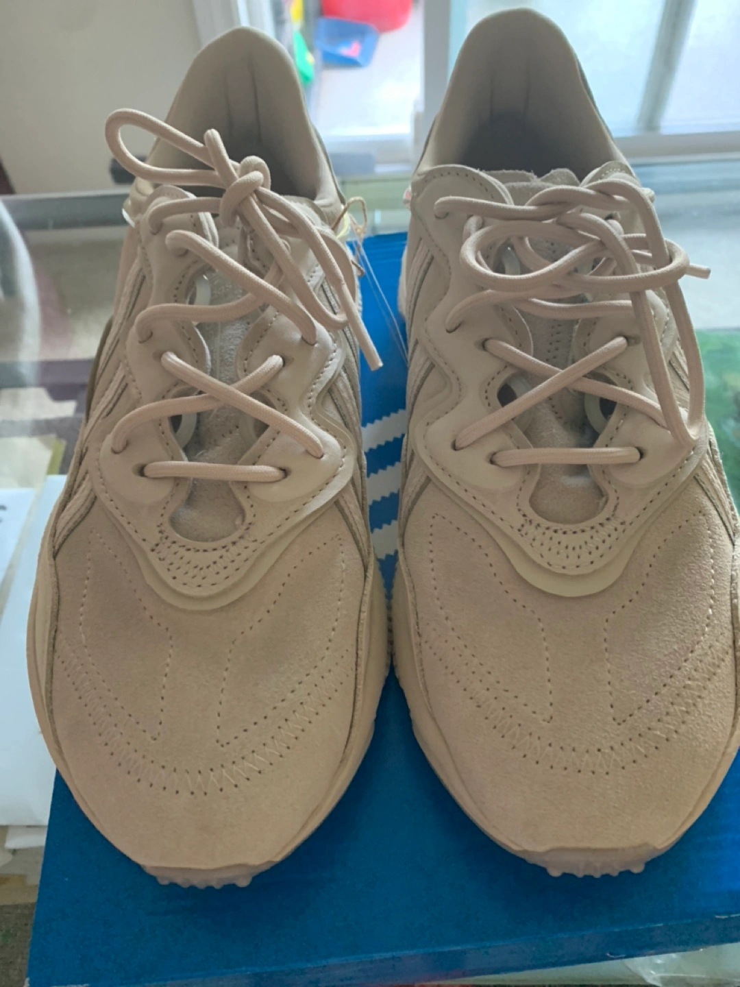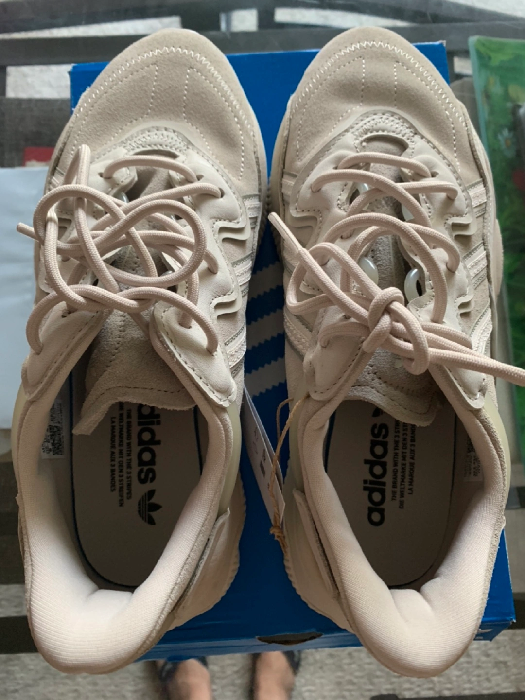 Selling a pair of Adidas Ozweego W sneakers in a lovely neutral colour! They are in excellent condition and come with the original box. The size is a women's US 8. These stylish and comfortable sneakers are perfect for everyday wear!