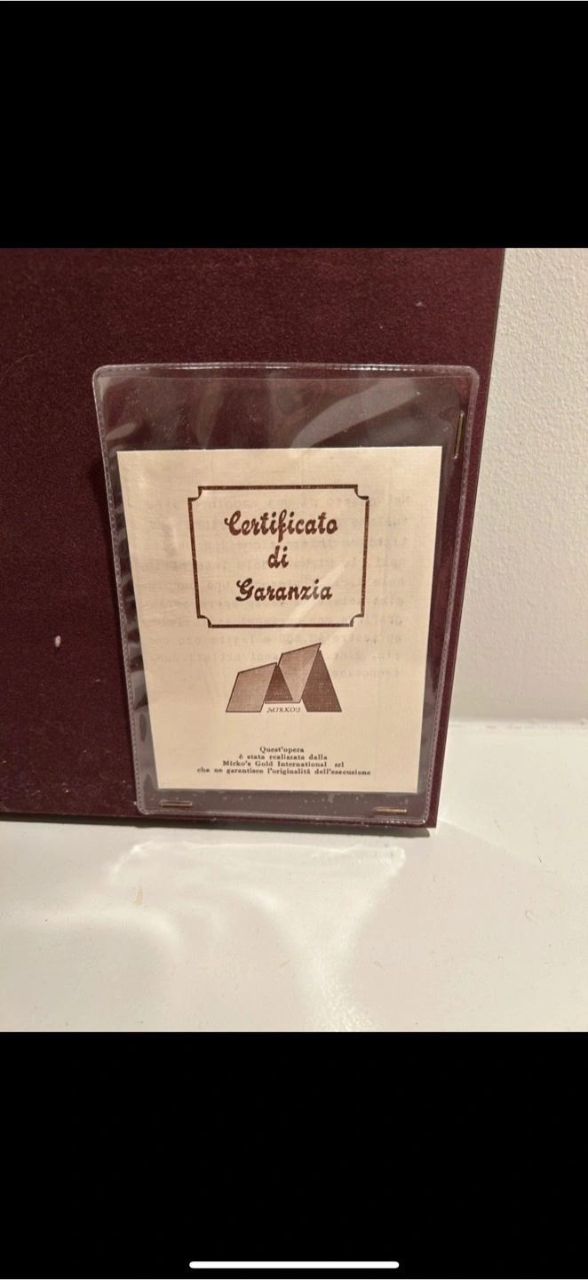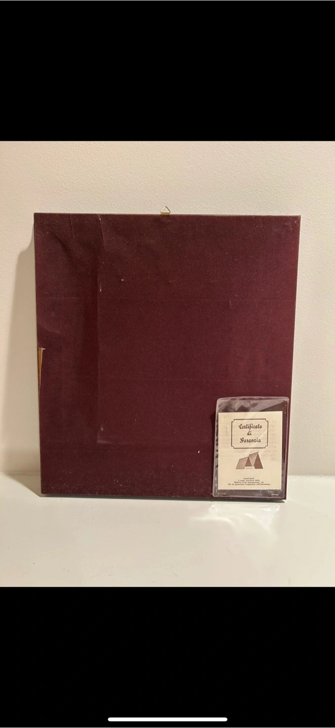 Features a certificate of guarantee from Italy. Black frame with grey matting. Unique piece with black lacquer wood frame.