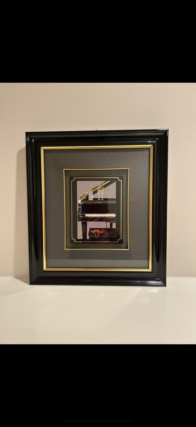 Selling gorgeous framed piano art. The frame is black and gold authentic wood lacquer from Italy.