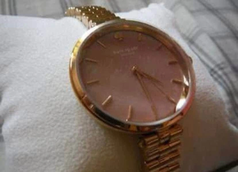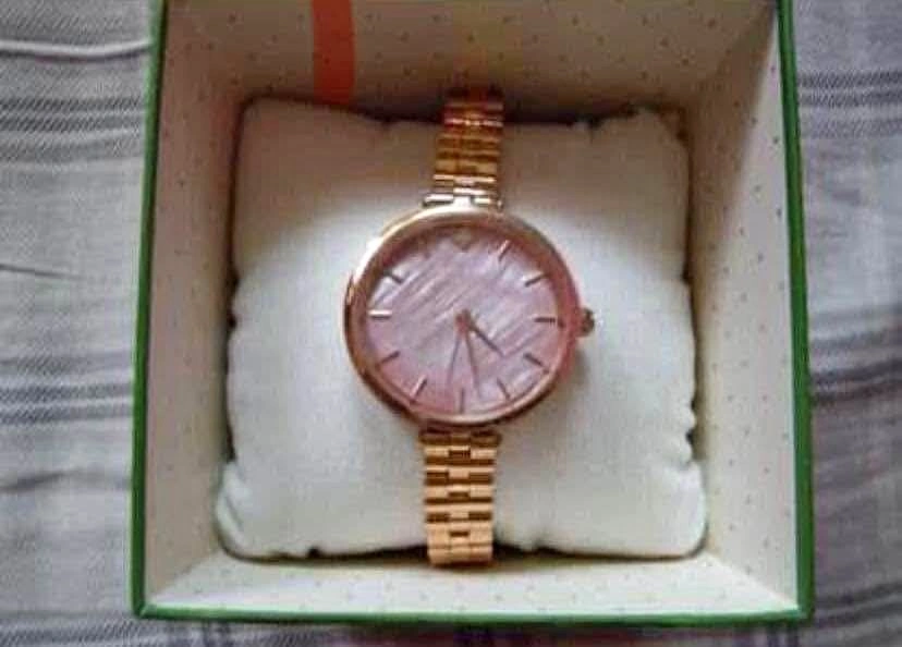 Never been worn, all original plastic on watch. Single tone, rose gold. Watch has been discontinued and is from the Kate spade holland series. Has a brand new battery. Located in Forest Lawn.