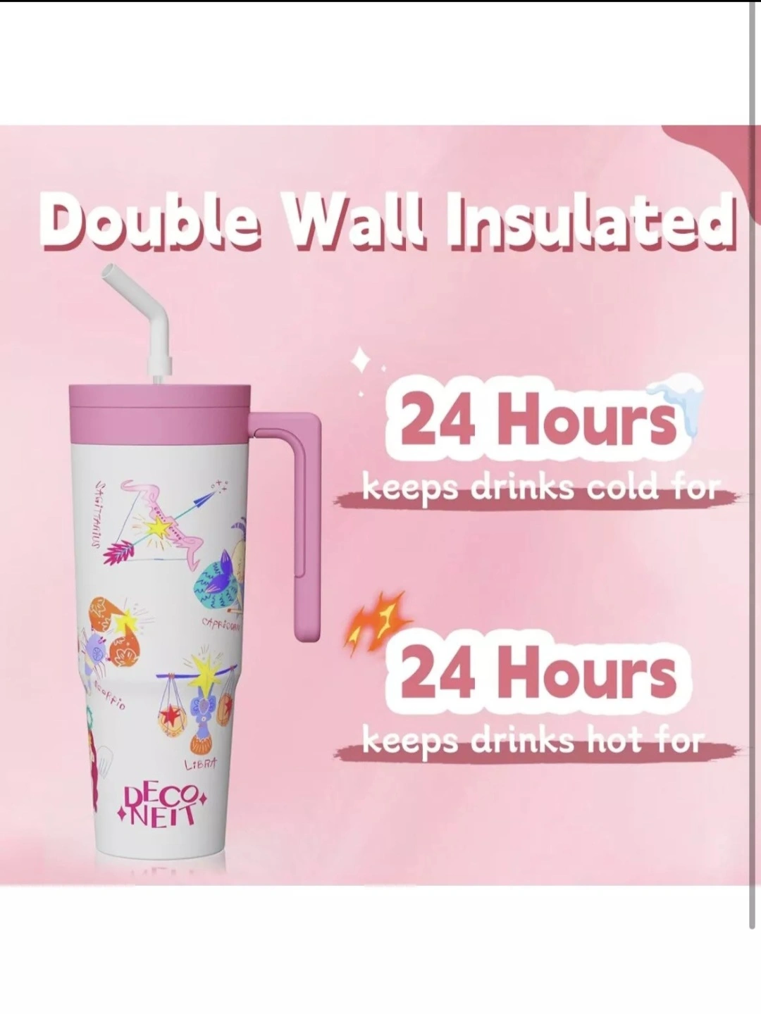 This DECO+NEII tumbler keeps drinks cold for 24 hours and hot for 24 hours! It features double-walled vacuum insulation and is made from 18/8 stainless steel. It also has a wide mouth opening, a sweat-free and easy grip, and is BPA-free, reusable, and eco-friendly! It's also 100% leakproof