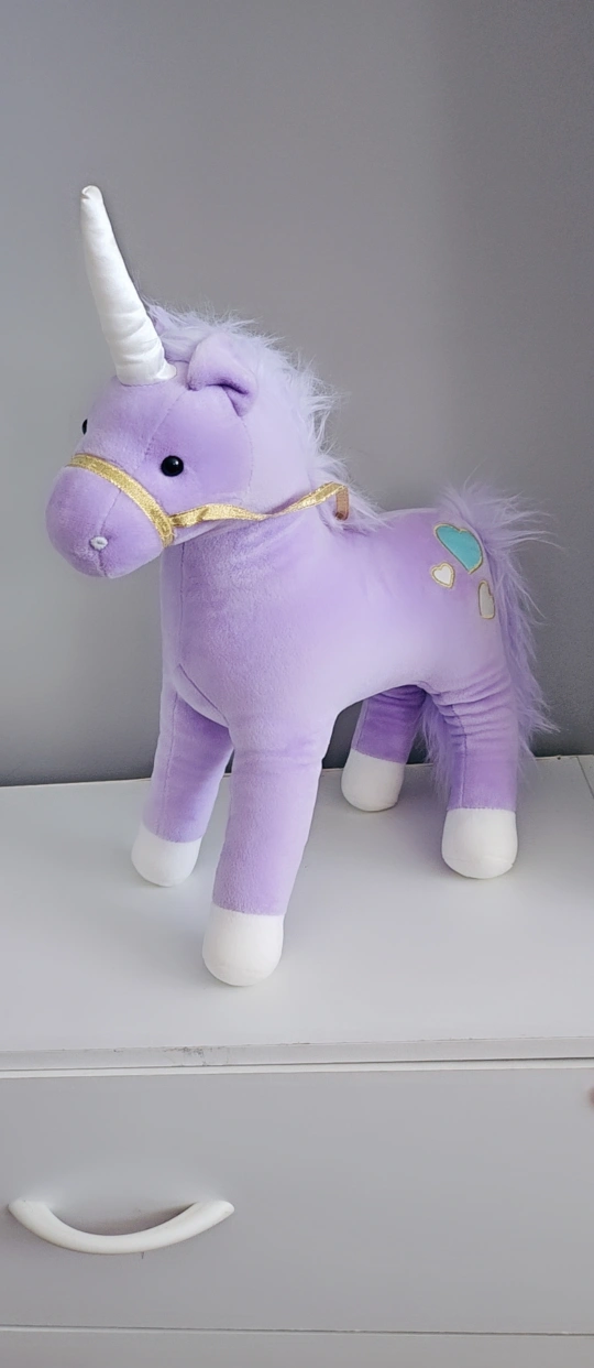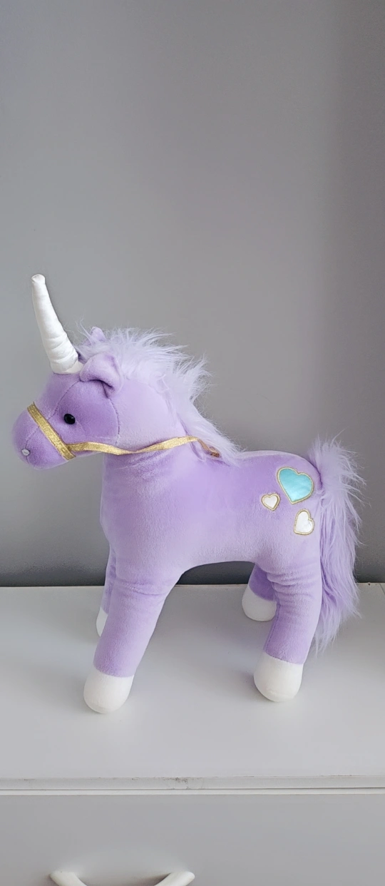 💜Selling a cute lilac unicorn plush toy! It's in great condition and would be perfect for a child's room or as a gift for a unicorn lover. It features a soft, fluffy mane and tail, and has adorable heart details on its side. It's a great size for cuddling and playing with💜