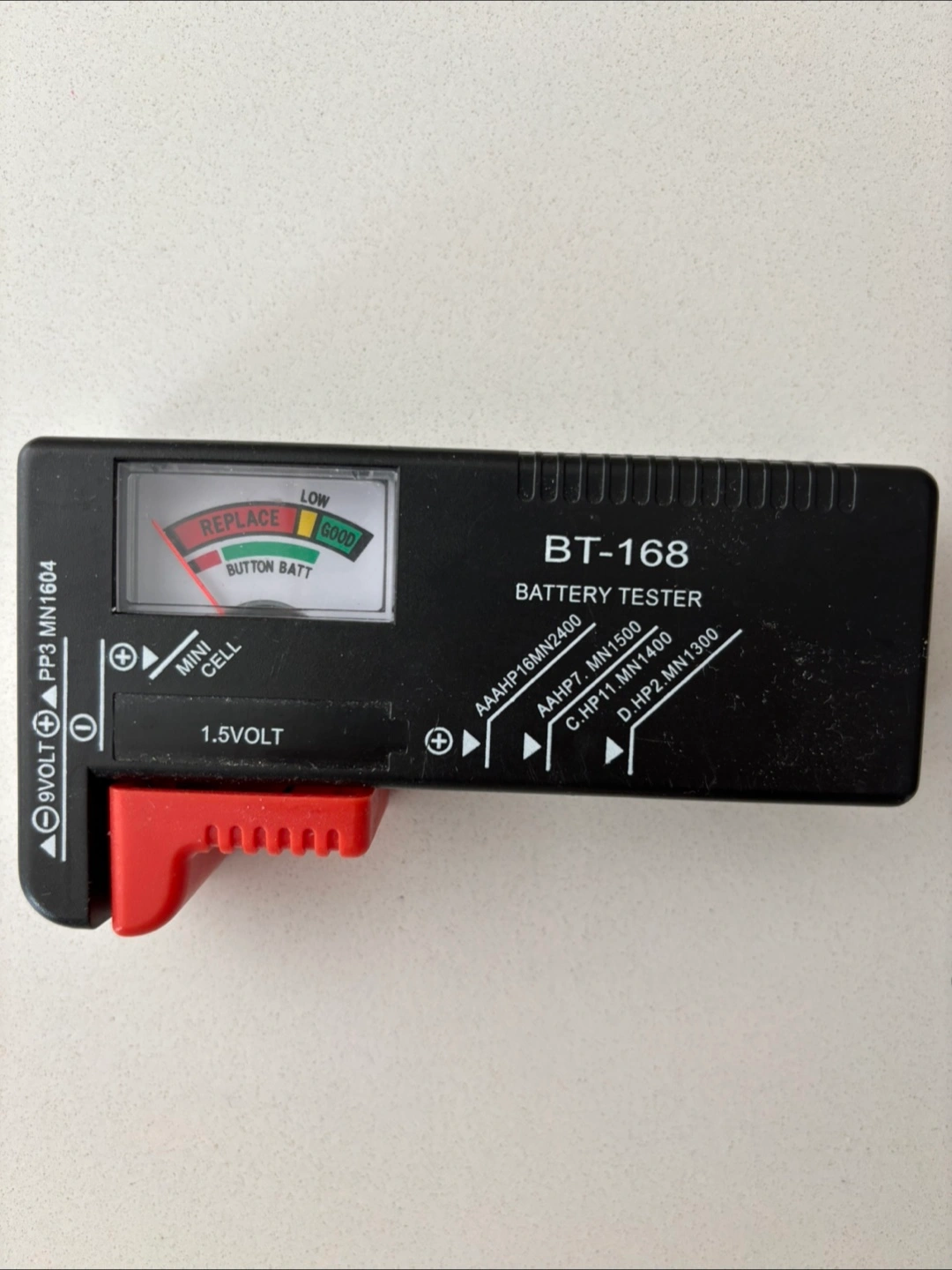 Selling a BT-168 Battery Tester. It can test 9V, AAA, AA, C, D, and button cell batteries. It has a simple indicator to show if the battery is good or needs replacing
