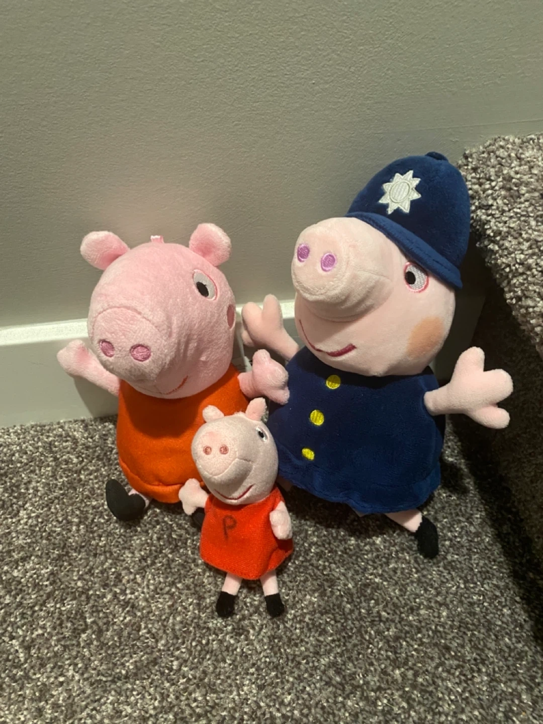 Selling a cute set of 3 Peppa Pig plush toys! Perfect for any Peppa Pig fan!