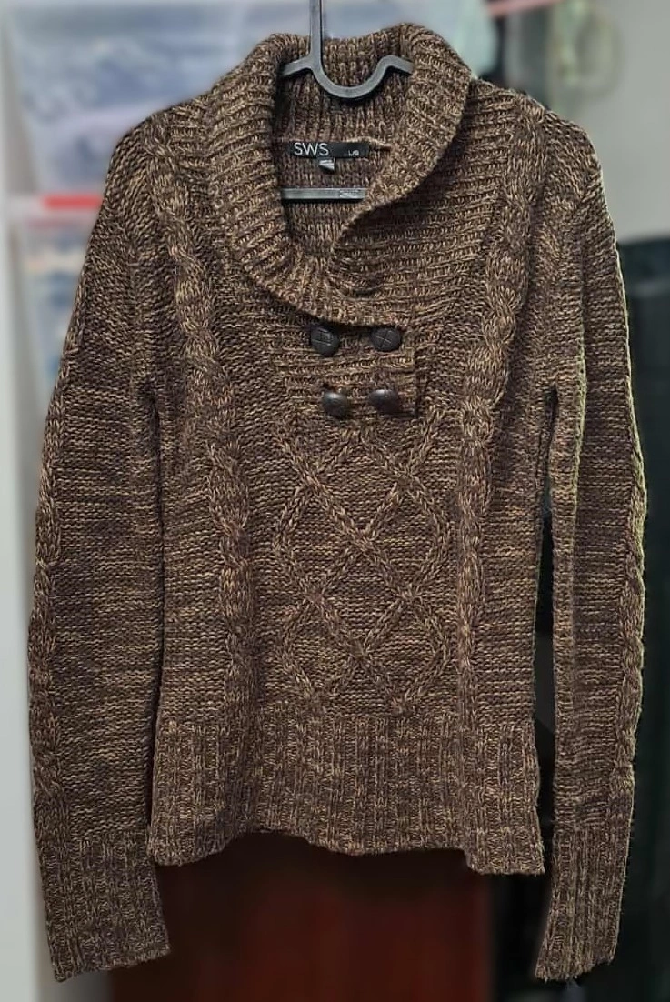 The SWS Knit Sweater is designed to retain warmth and features high-quality, soft materials in a stylish, well-fitting garment. It is in great pre-loved condition. Used like New. Selling SWS Knit Sweater plus free turtleneck knit top size S/M. Lee pants not included.