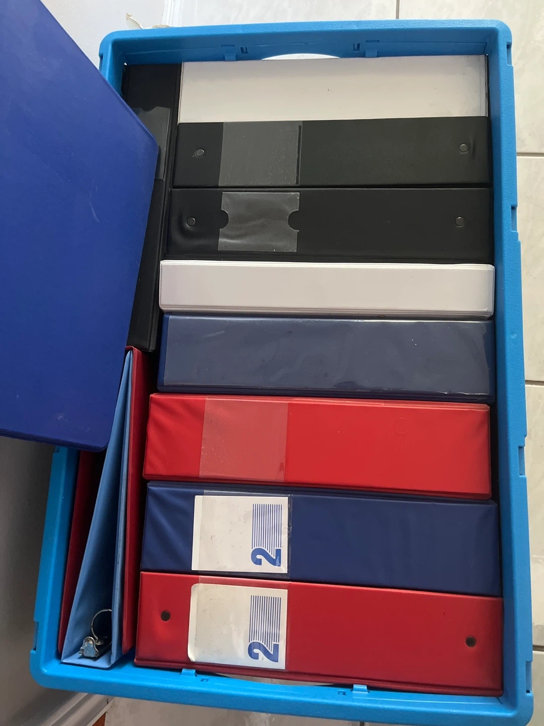 Selling a collection of binders .The binders are in various colours including red, blue, white, and black. Great for organizing documents and papers!