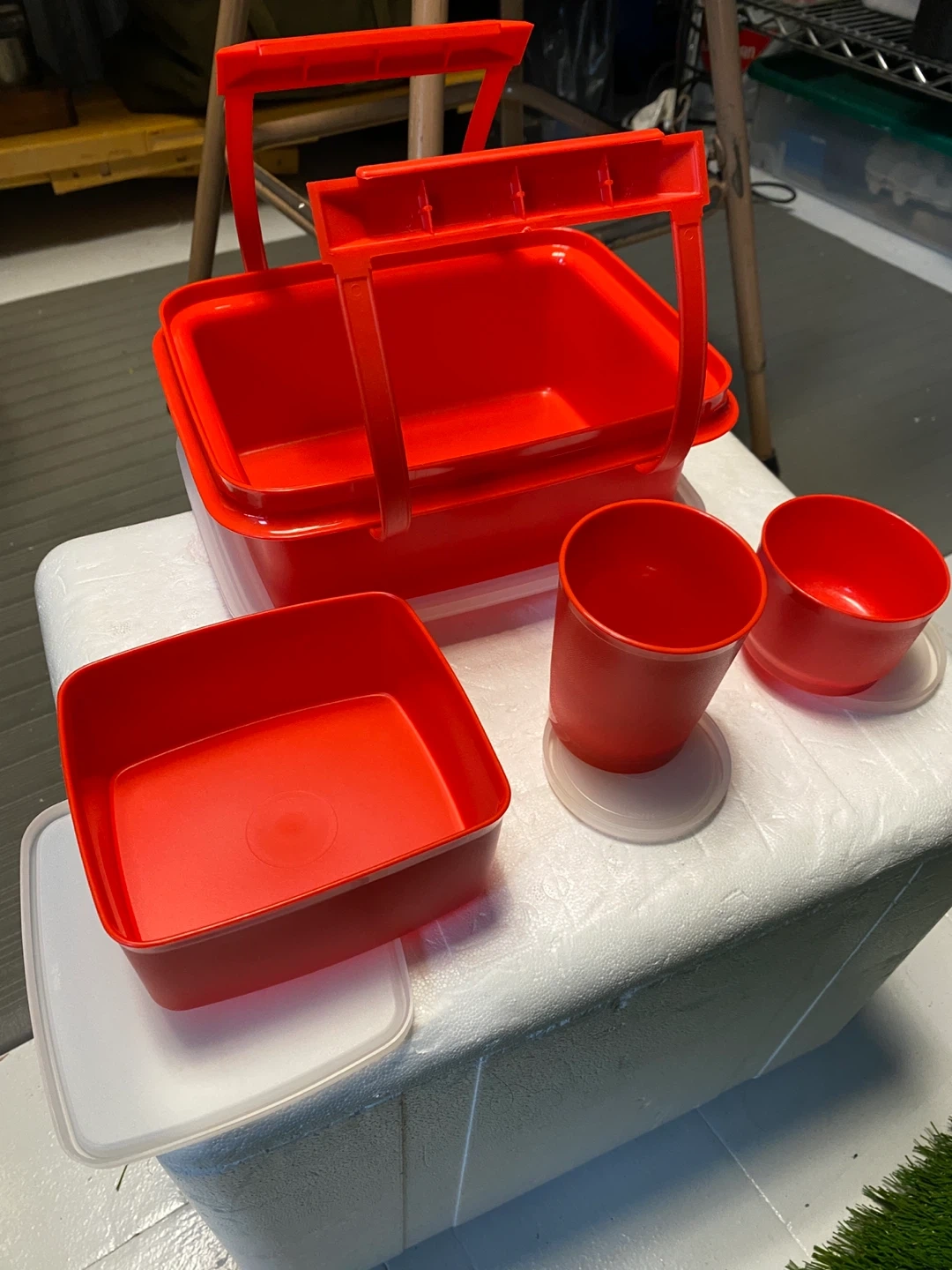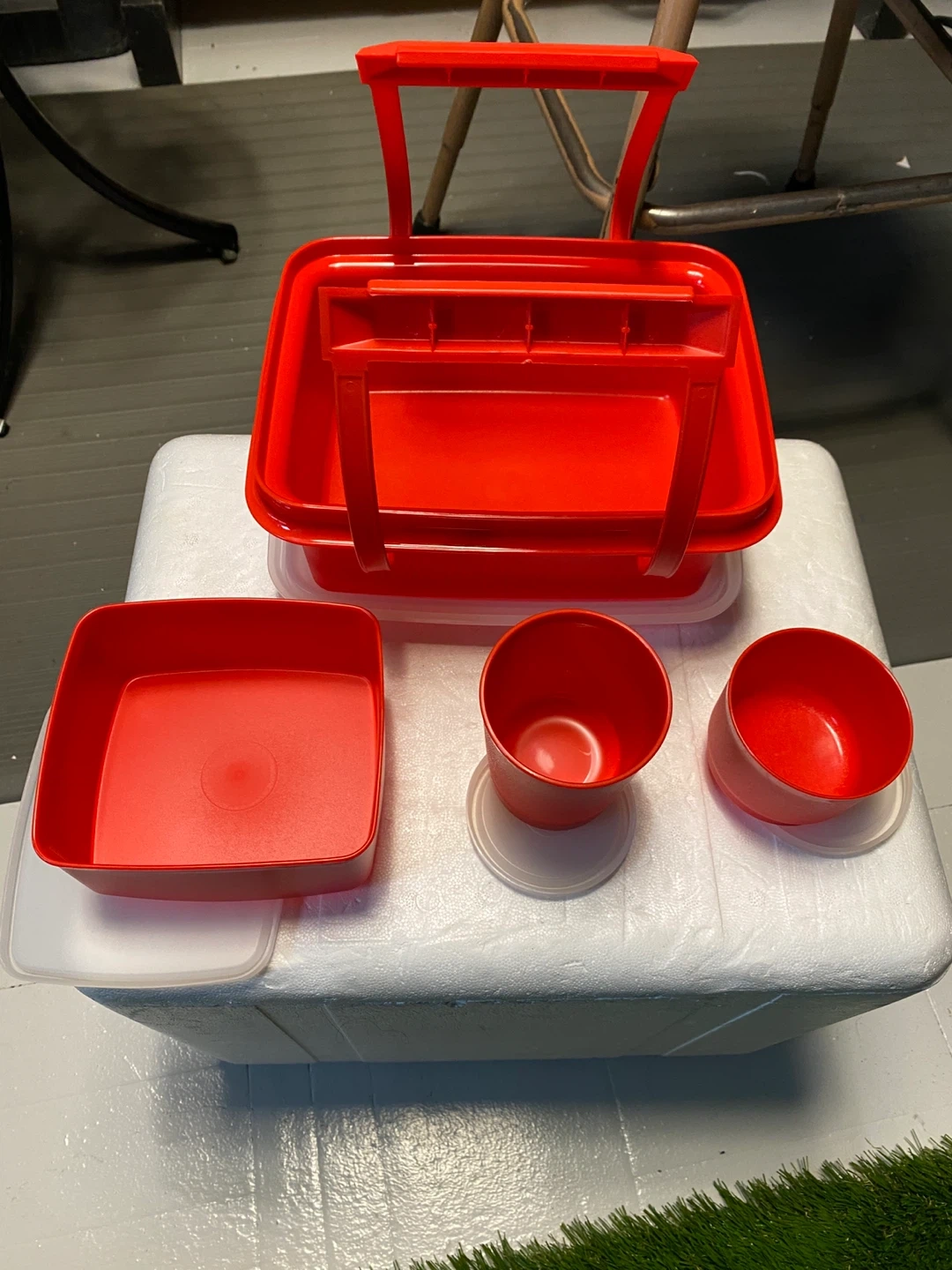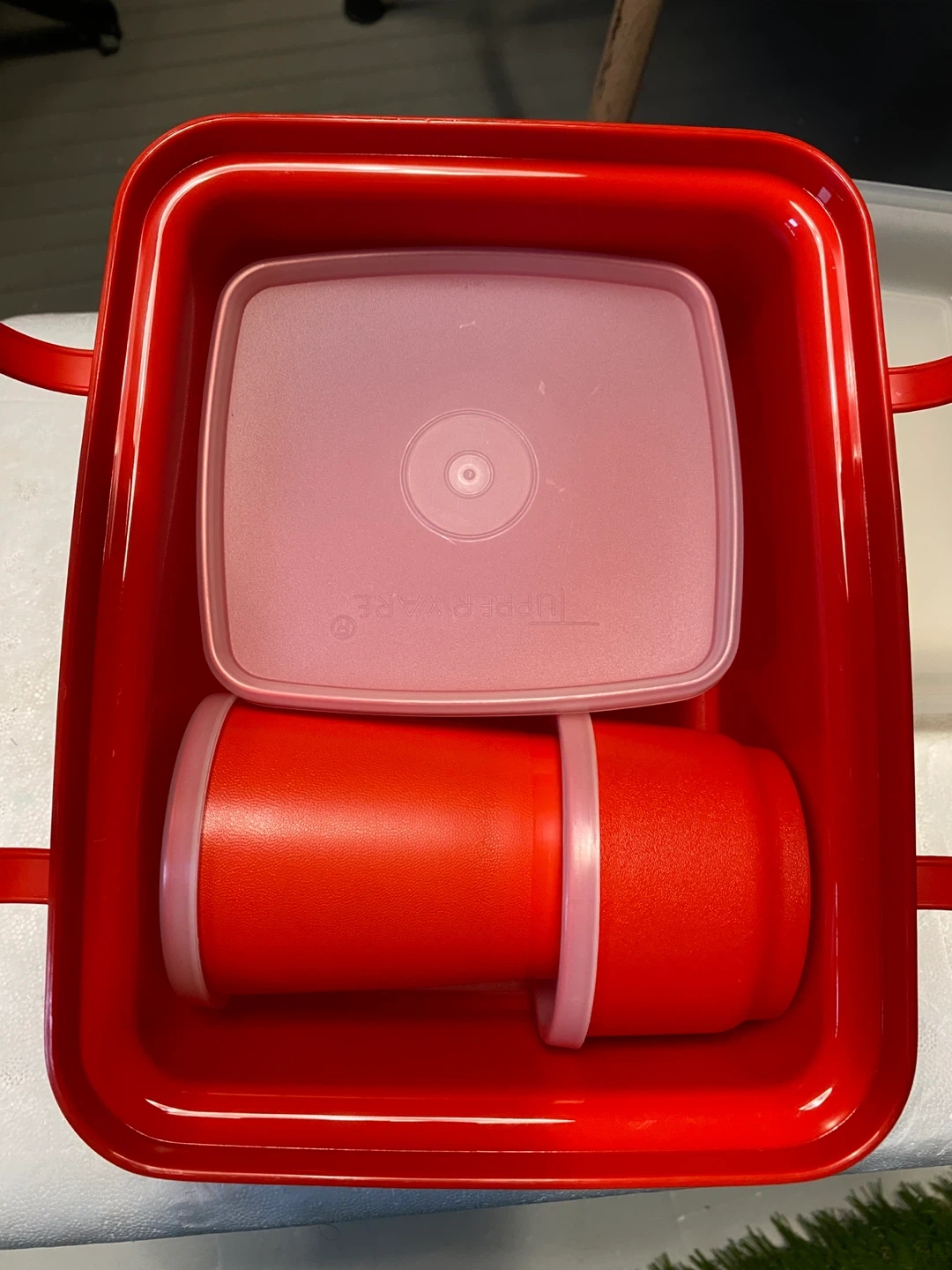 Selling a red Tupperware lunch box container. It's in great shape and ready for a new home! Perfect for packing lunches or storing leftovers