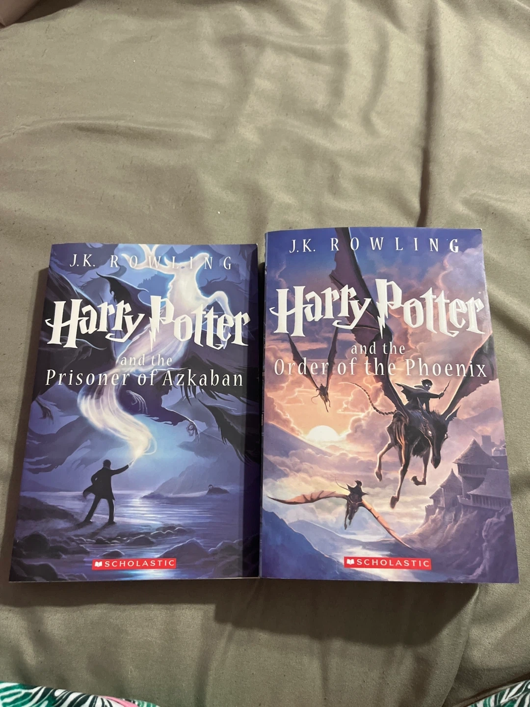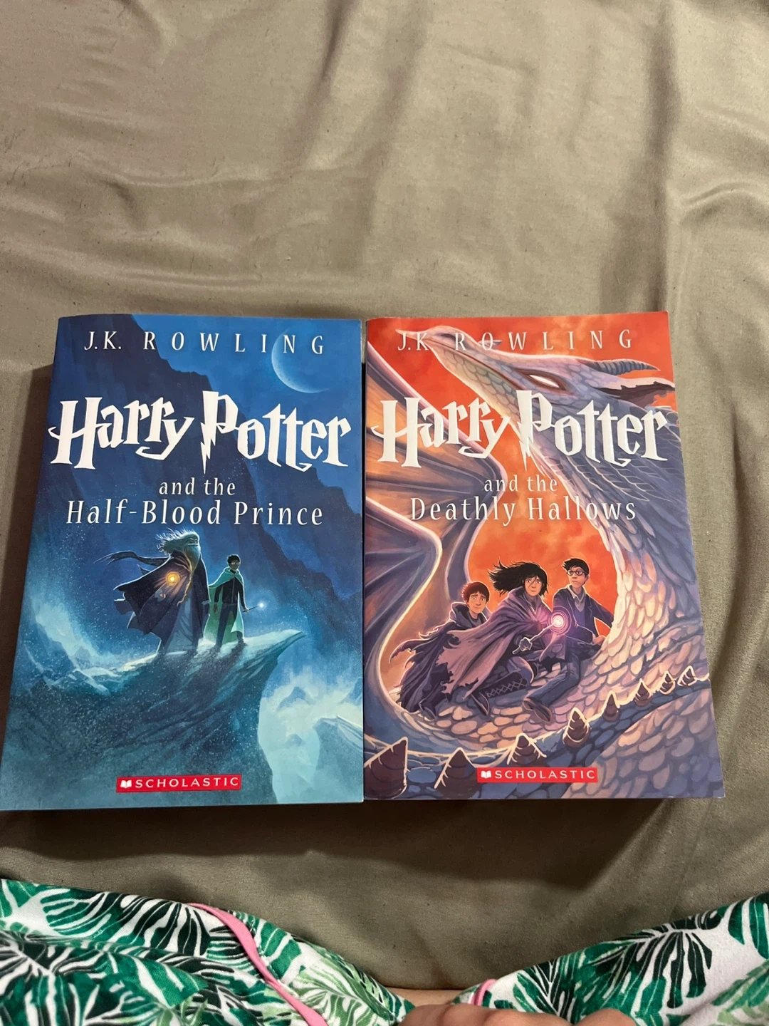 Selling a set of Harry Potter books by J.K. Rowling! This includes: - Harry Potter and the Sorcerer's Stone - Harry Potter and the Chamber of Secrets - Harry Potter and the Prisoner of Azkaban - Harry Potter and the Order of the Phoenix - Harry Potter and the Half-Blood Prince - Harry Potter and the Deathly Hallows