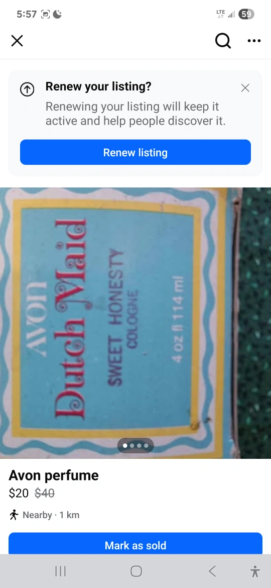 Selling a vintage Avon Dutch Maid Sweet Honesty Cologne. It's a 4 oz bottle in the original box. The box has a cute tulip design! Originally listed for $40, now selling for $10
