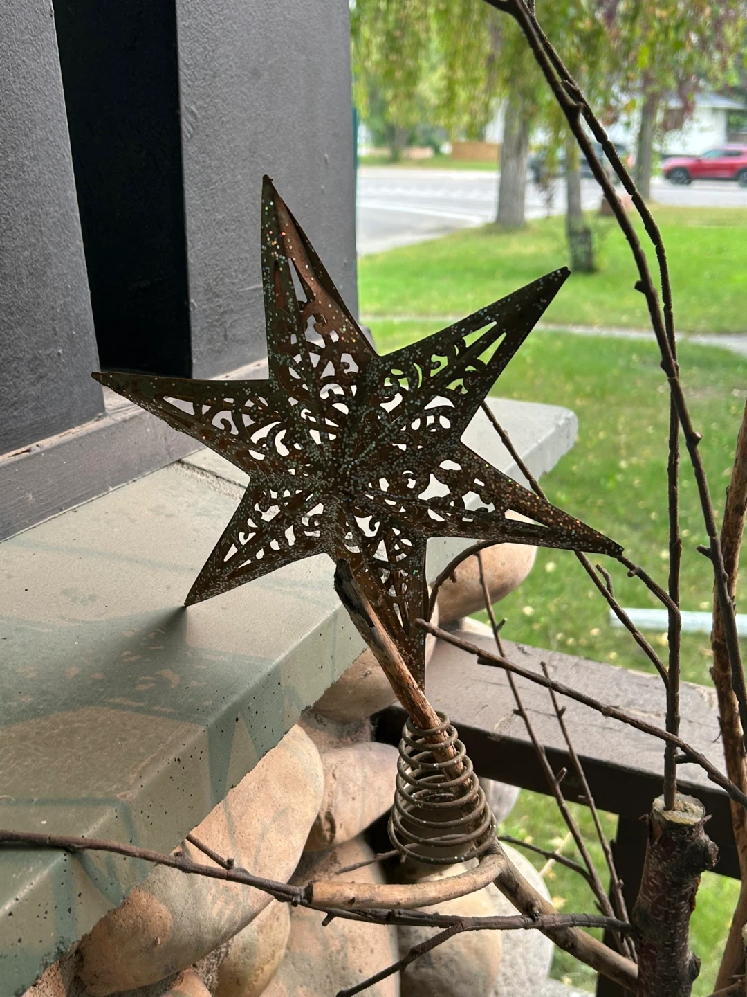 A few home decor items looking for a new home! There is a star tree topper and a set of vintage skates. Perfect for adding a touch of rustic charm to your space