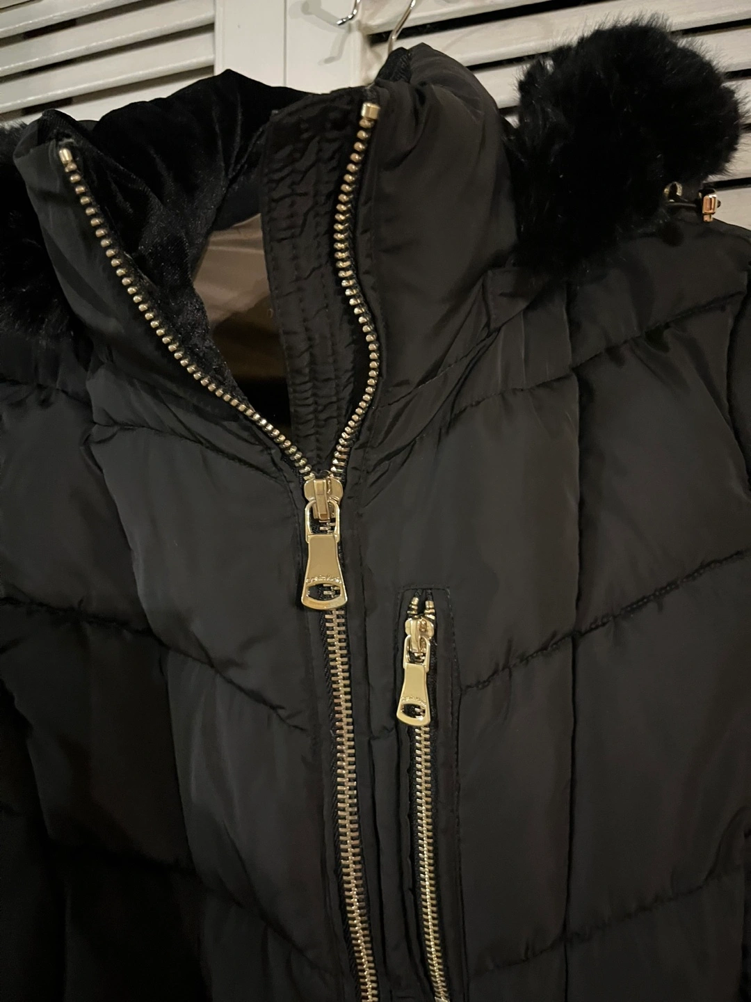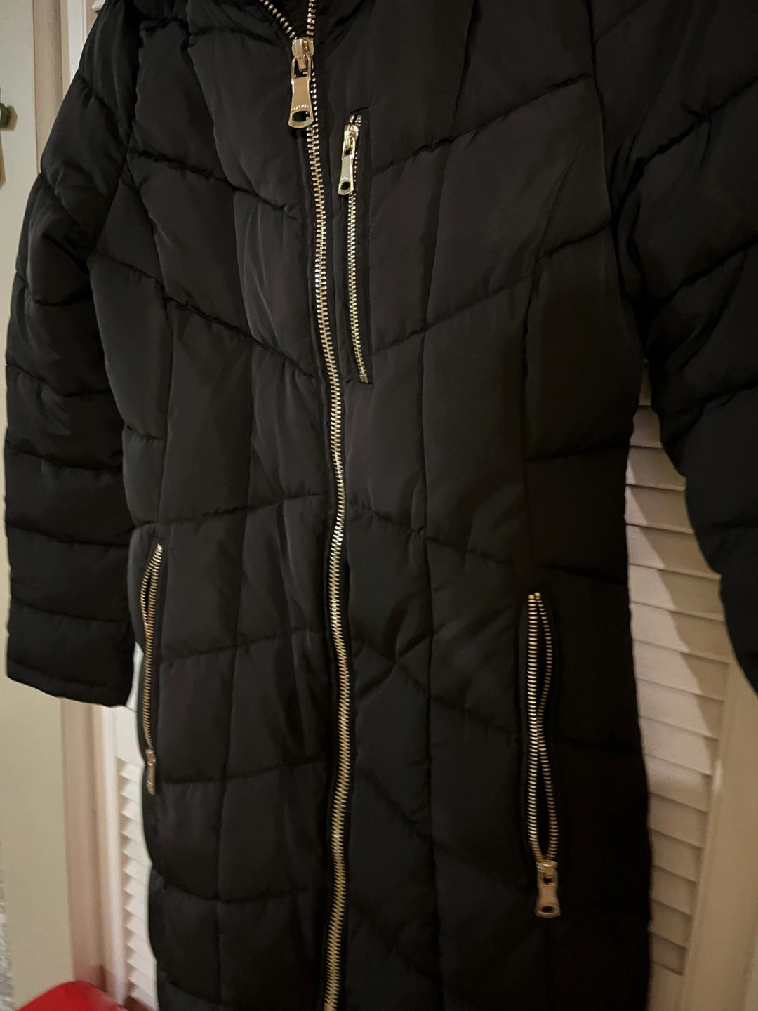 Selling, brand new, never worn, tag on Calvin Klein 3/4 puffer coat in black! It's a size XS and features a stylish design with gold zippers. Great for staying warm during the colder months!