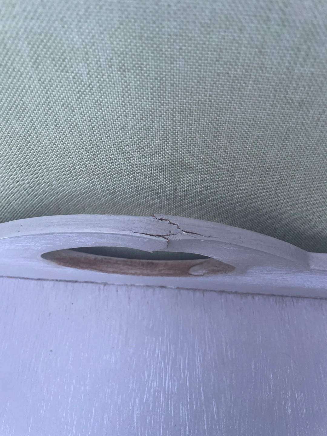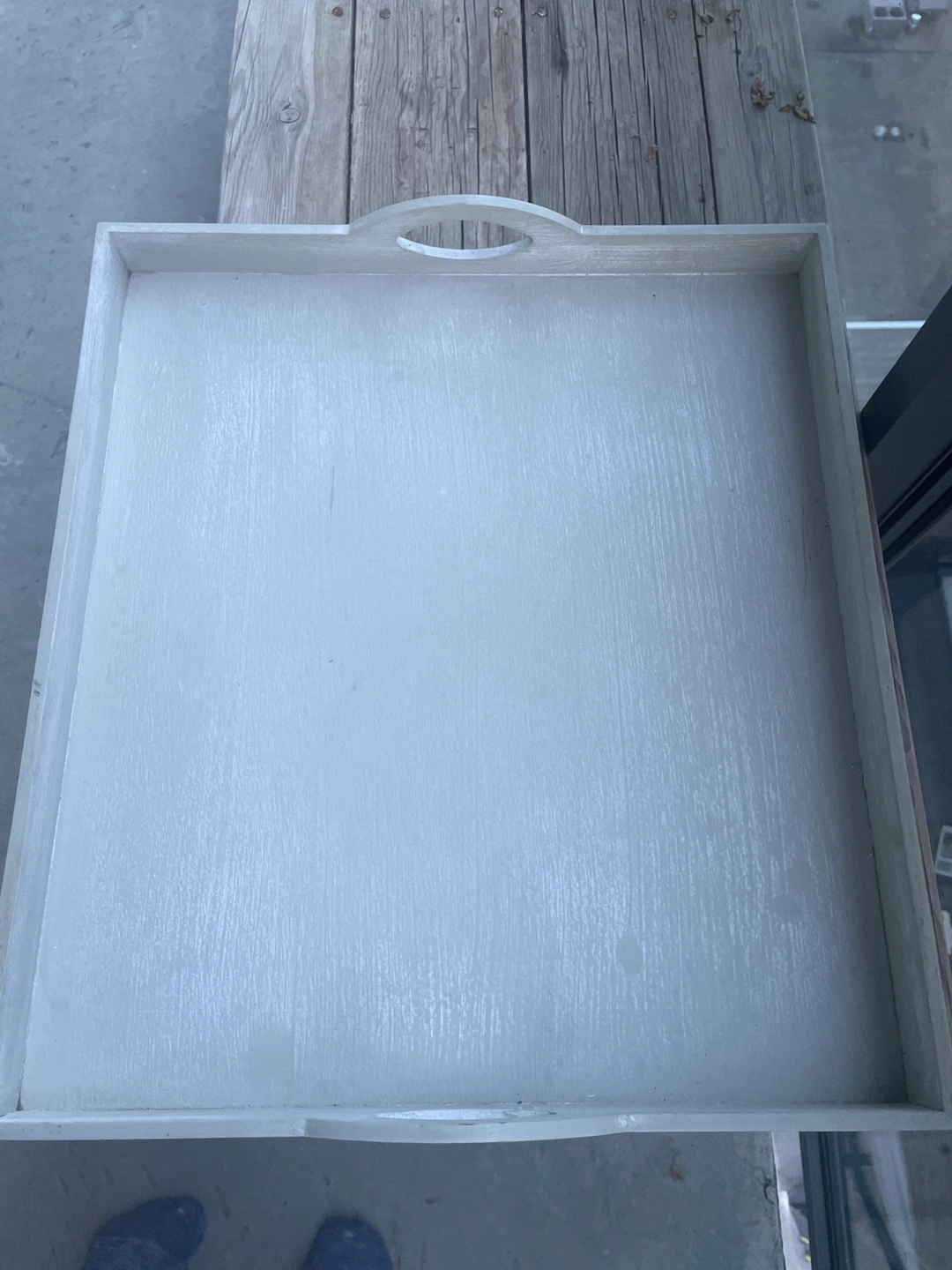 Selling 2 white wooden serving tray. It has a handle for easy carrying. There is a crack in the handle on one of them.