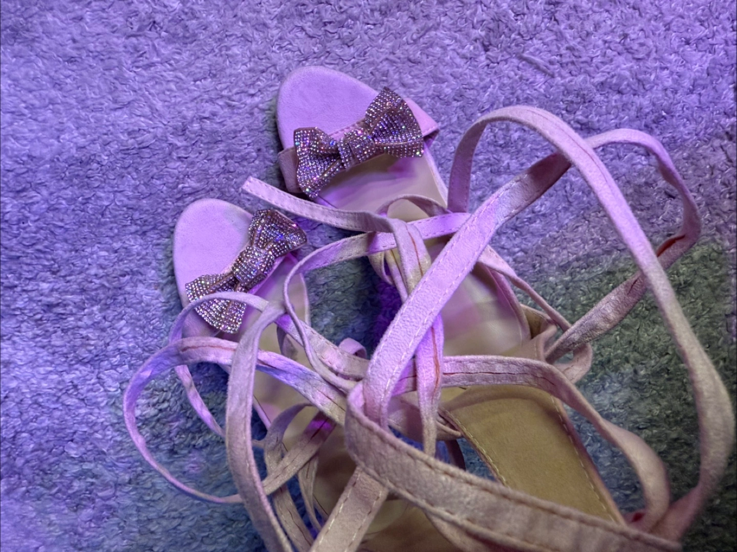 These strappy heels are super cute! They feature adorable rhinestone bows on the front. Perfect for a night out or a special occasion!