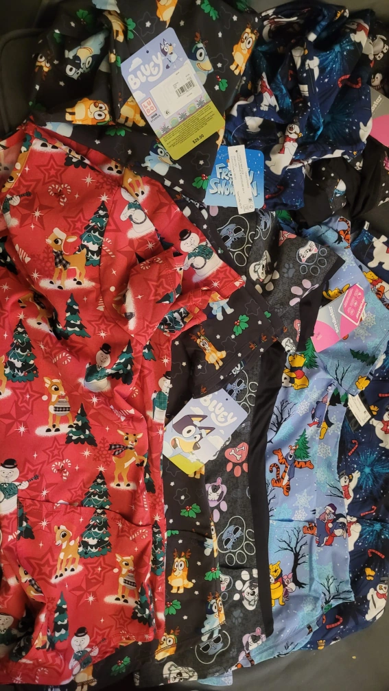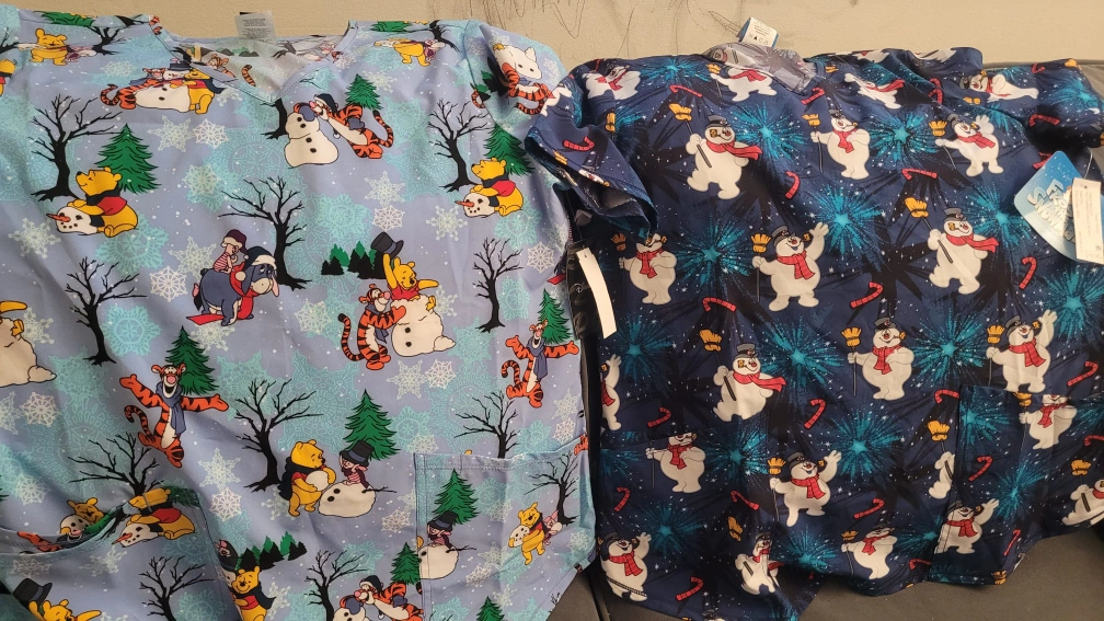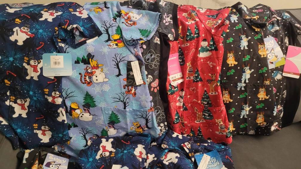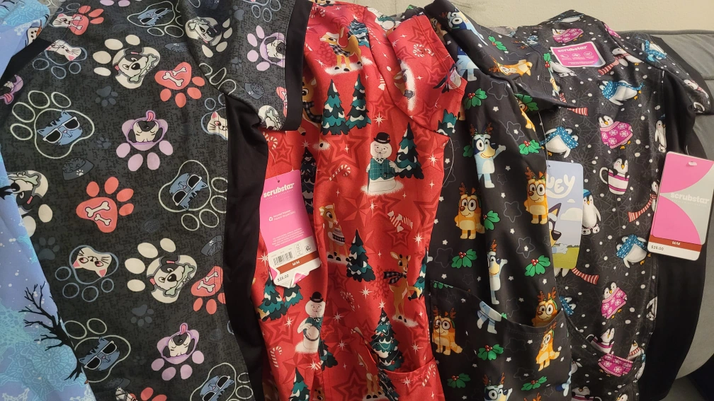 I have a collection of brand new Scrubstar scrub tops available in sizes XS, S, and M! They feature fun and festive patterns, perfect for the holidays or adding some cheer to your work day. The tags are still on, and they're ready for a new home. Originally priced around $26-29 each