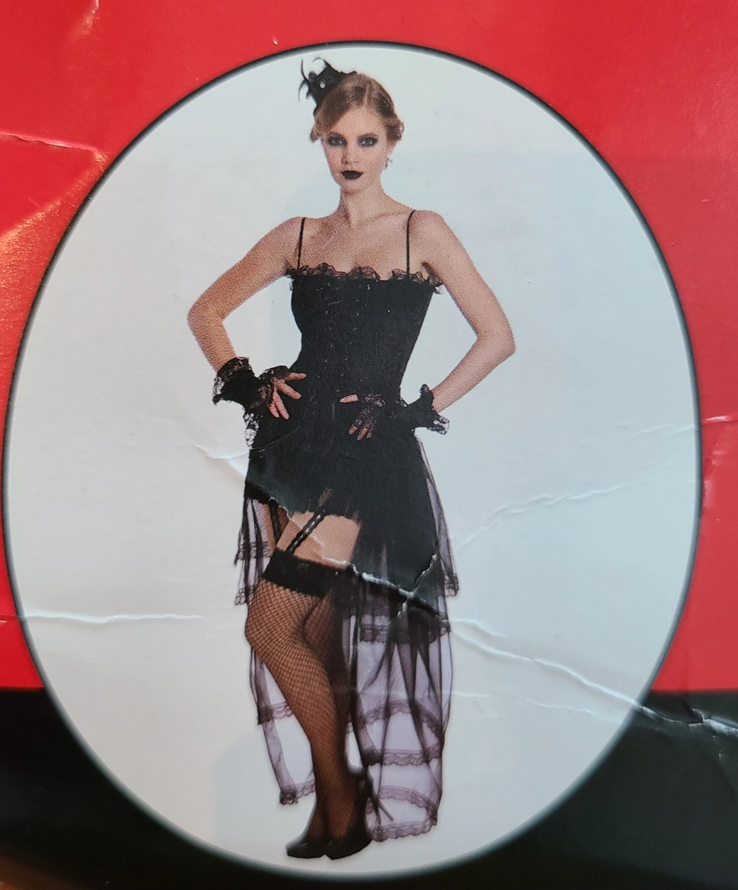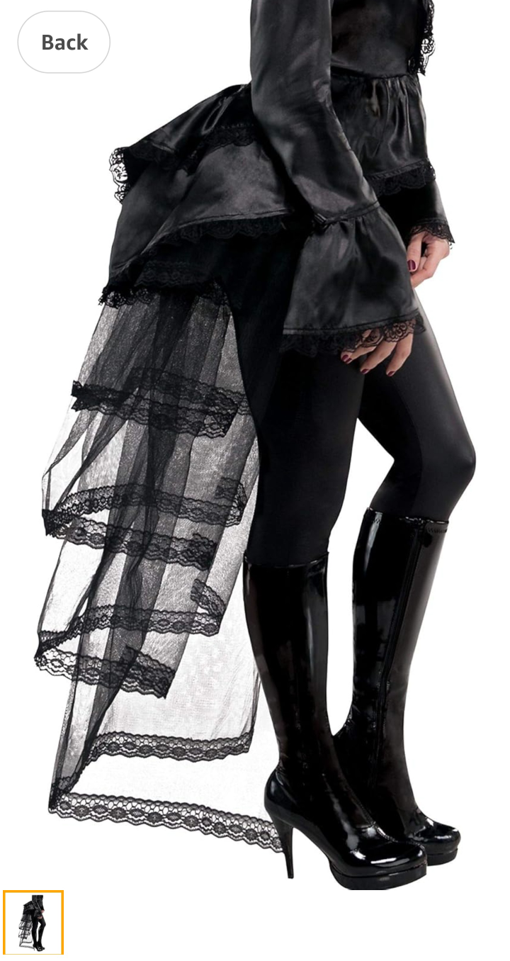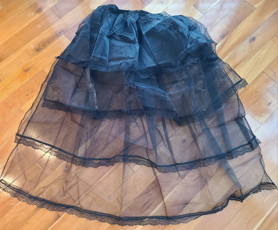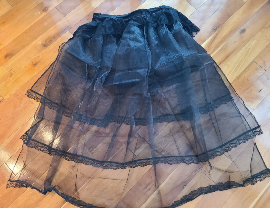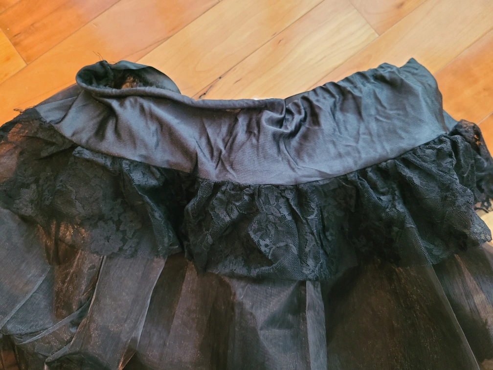 Here's a black layered skirt with lace trim! It's in one size and would be a fun addition to any wardrobe