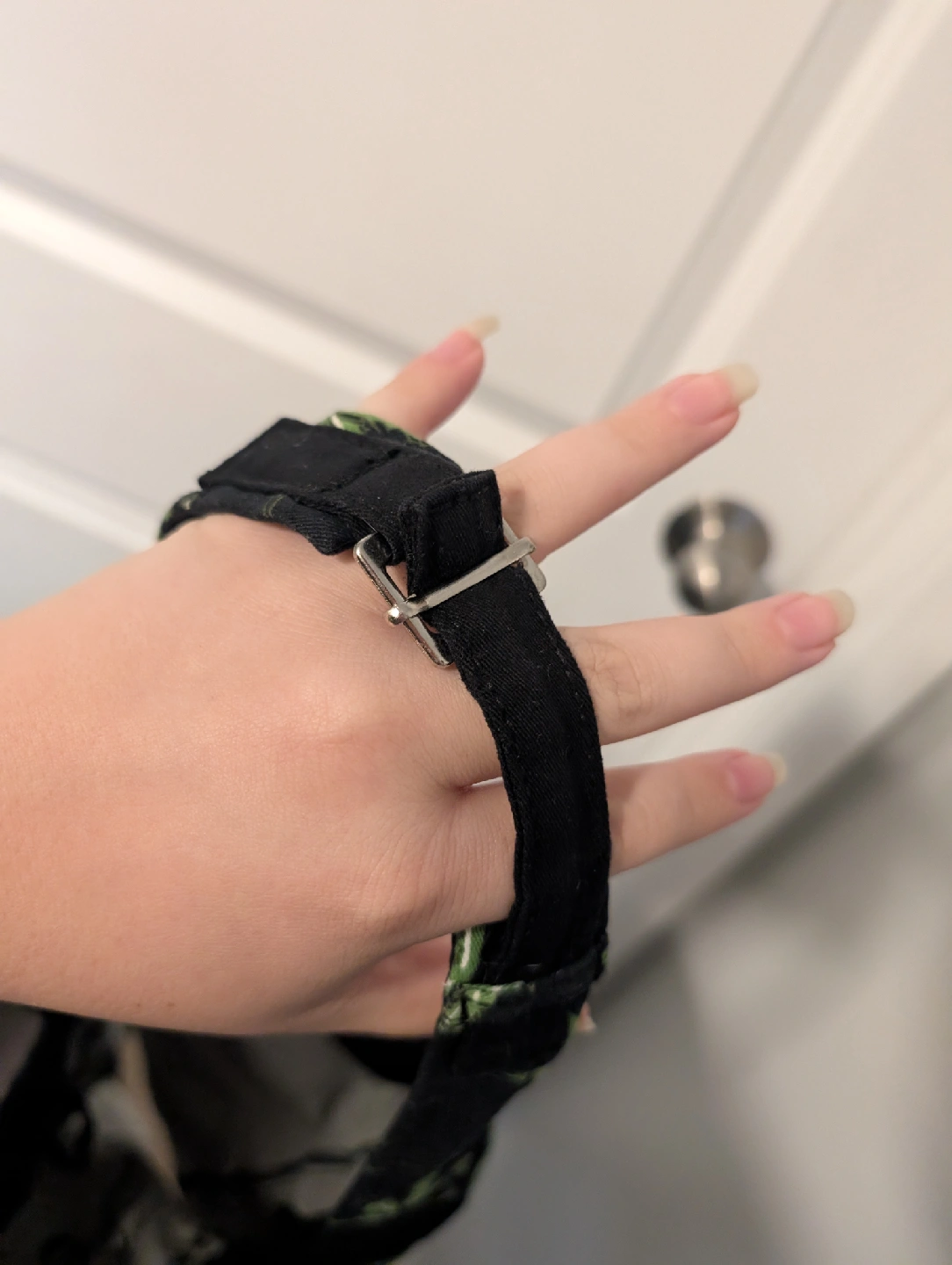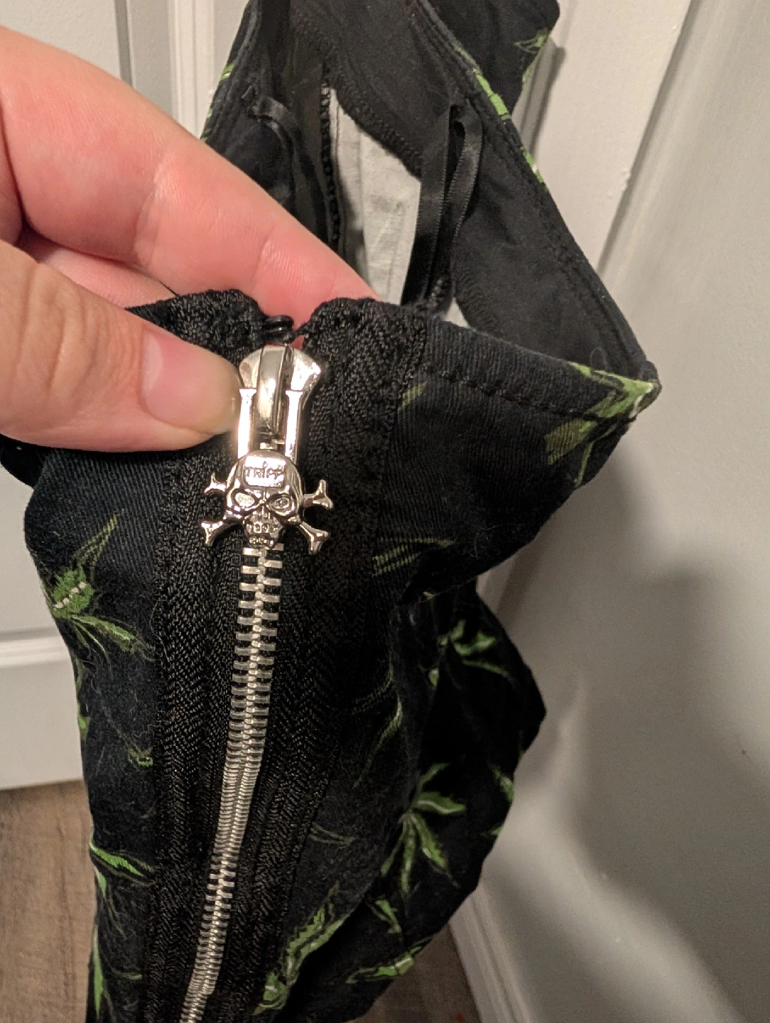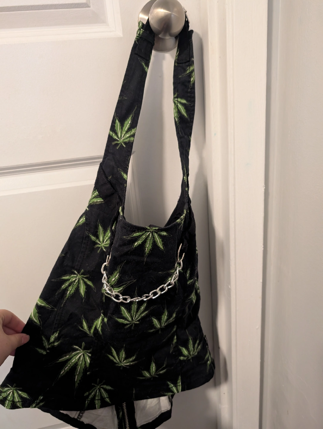 Mary Jane Halter corset with grass print and chains. Adjustable neck.