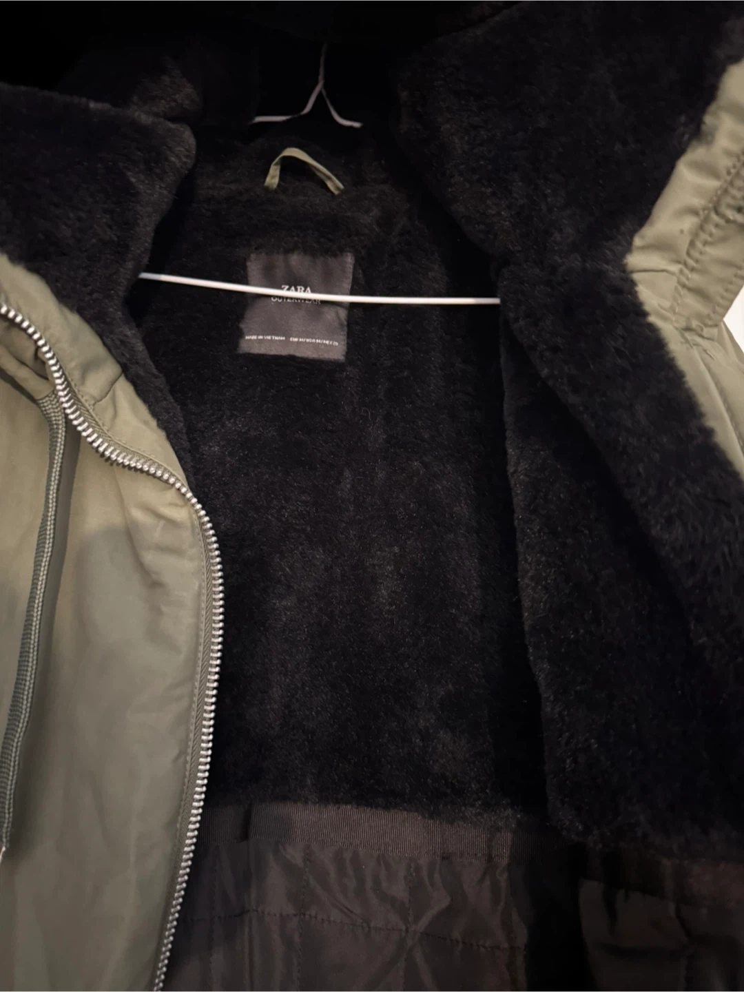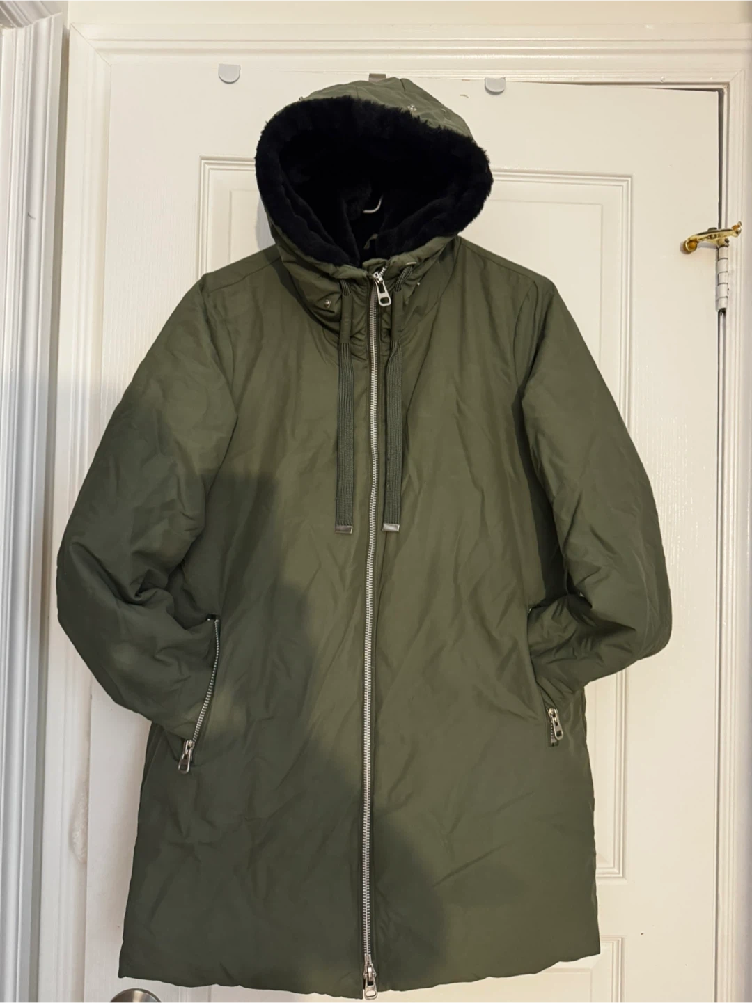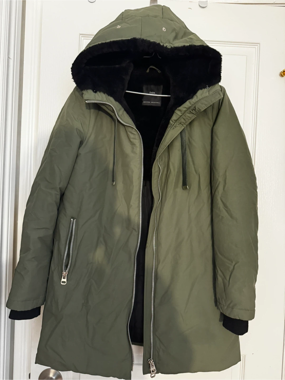 Selling a Zara outerwear parka in olive green. It has a faux fur lining and hood. Perfect for the cold Canadian winter! Women’s medium $45 Yonge and finch area