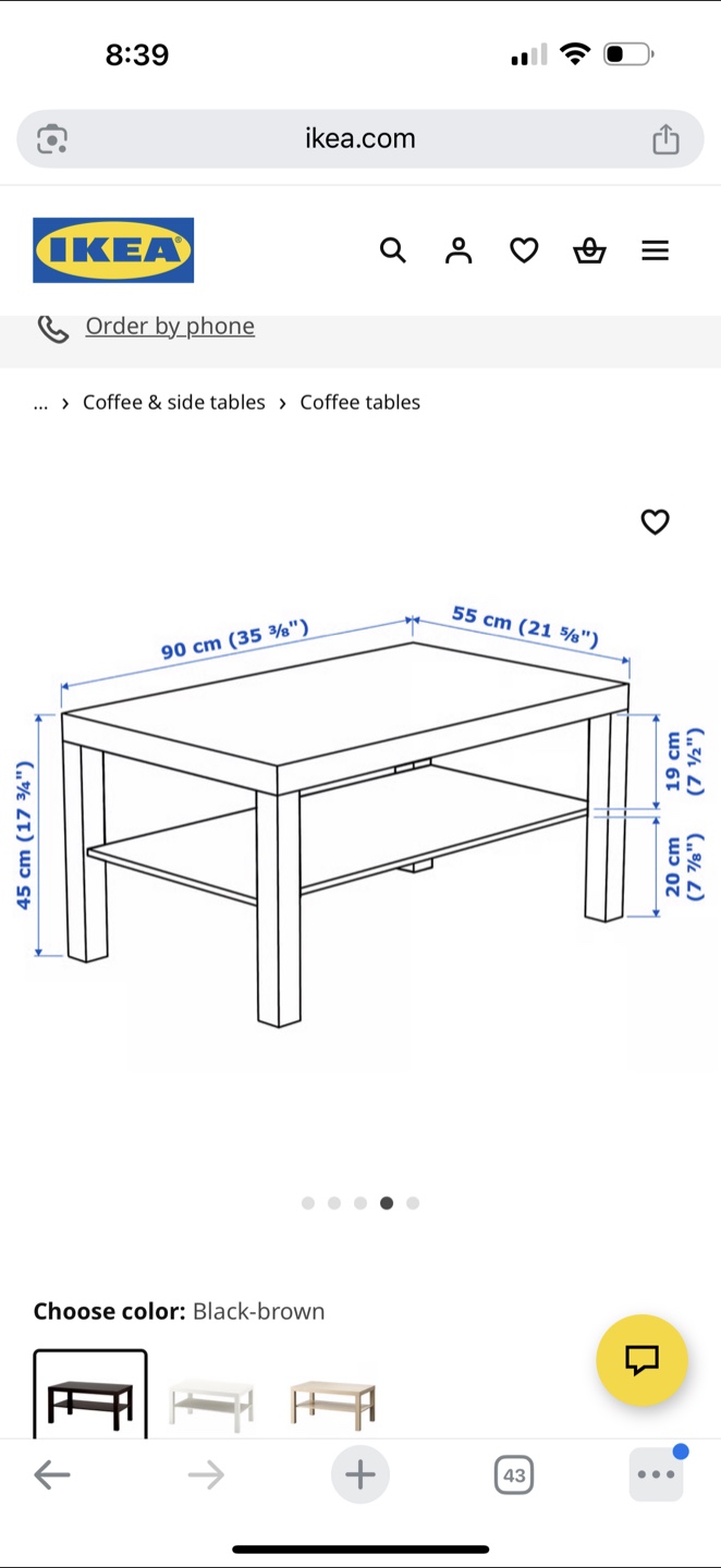 Selling an IKEA Lack coffee table in black-brown. It's in great shape and ready for a new home! The dimensions are 90 cm x 55 cm, and it stands 45 cm tall. Perfect for any living room!