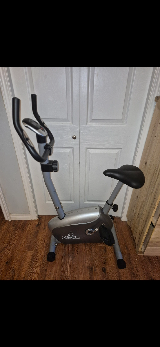 Selling a Healthline exercise bike. It's in great shape (with a few small scrapes) and ready for a new home gym! The bike features a digital display to track your workout progress. Perfect for getting your cardio in at home!