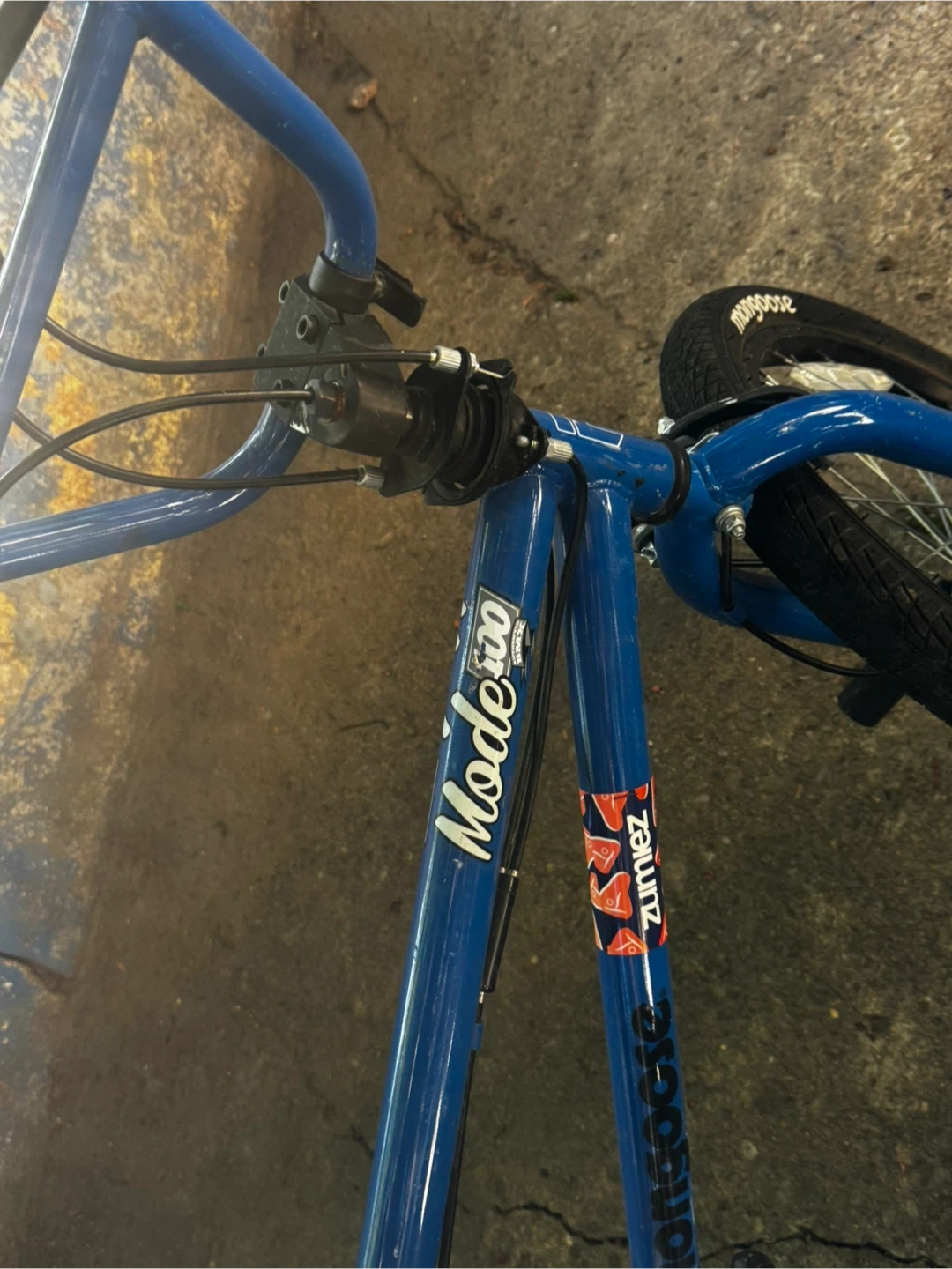 Selling a blue Mongoose BMX bike. It's in good used condition and ready for some action! Perfect for kids or teens looking to try out some tricks.
