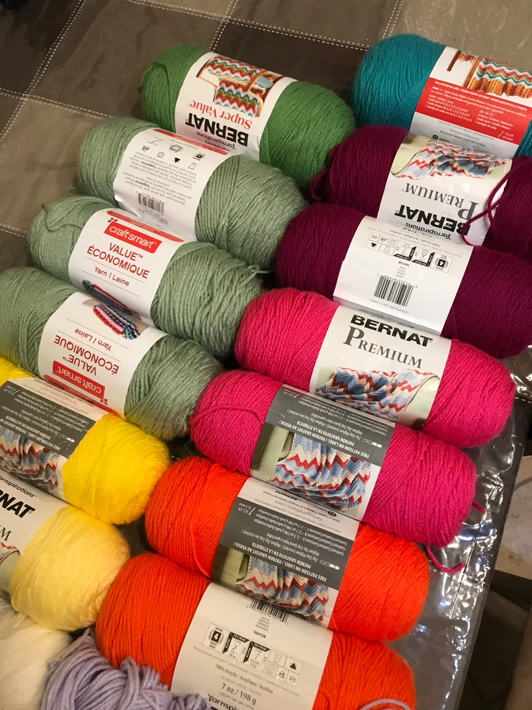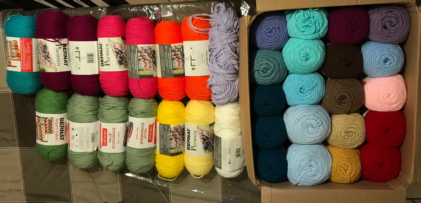 Selling a big lot of Bernat and CraftSmart yarn!There's a great mix of colours , perfect for all sorts of knitting and crochet projects. Includes Bernat Premium and Bernat Super Value yarn. Get creative with this yarn bundle!