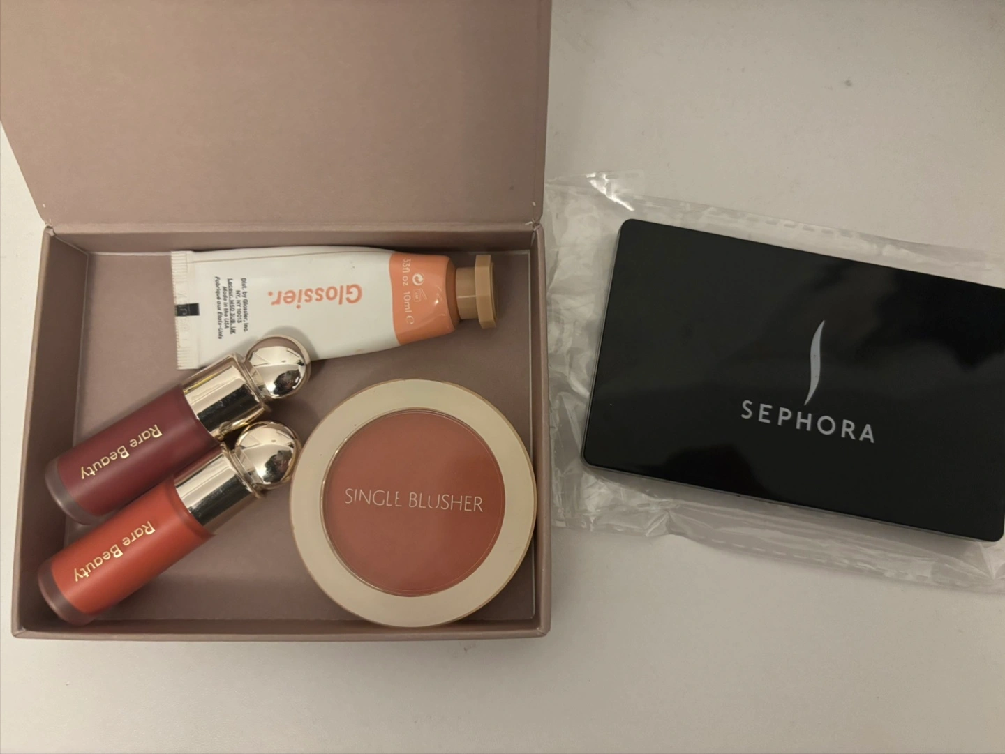 Makeup bundle Rare Beauty Mini Blush (3.2ml) - Joy Rare Beauty Mini Blush (3.2 ml) - Truth Glossier Liquid Blush - Dusk The Saem Blusher - Rose RD03 Sephora Mirror Message for individual products pricing All in great condition and used only a few times.