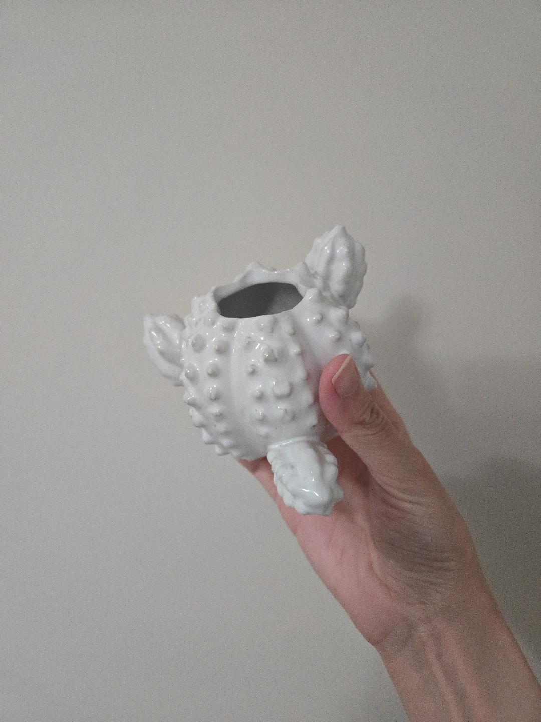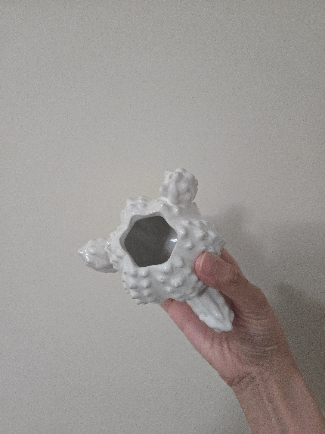 Cute little cactus-shaped vase! It's a unique piece and would look great with an air plant or as a decorative item on its own.