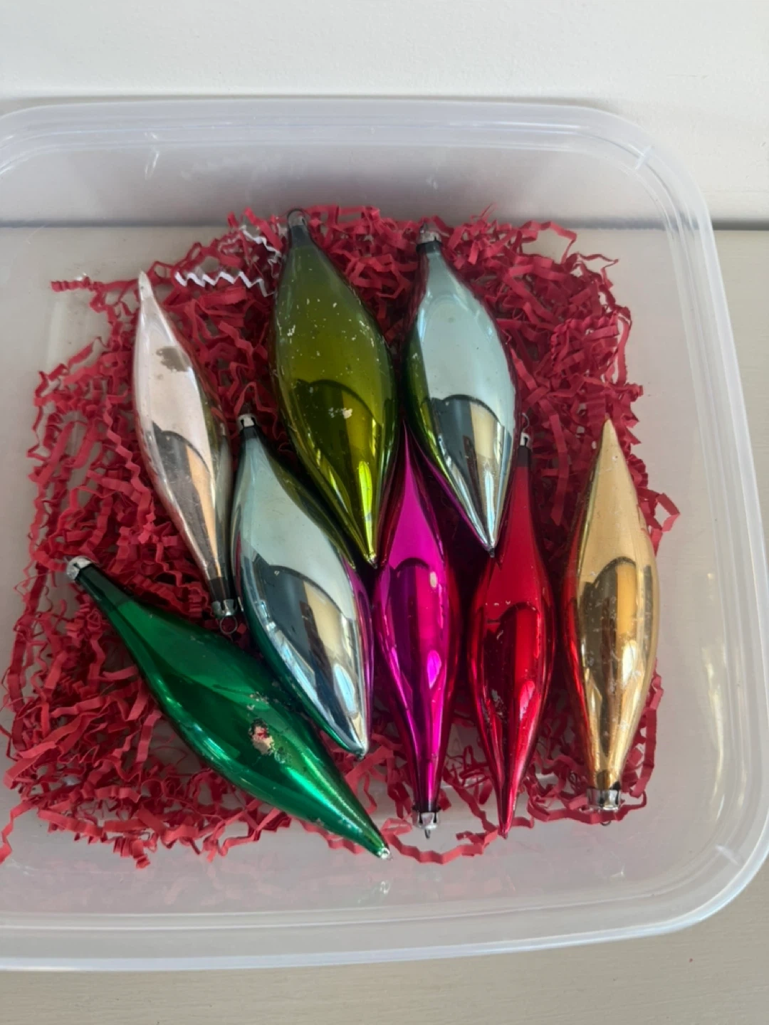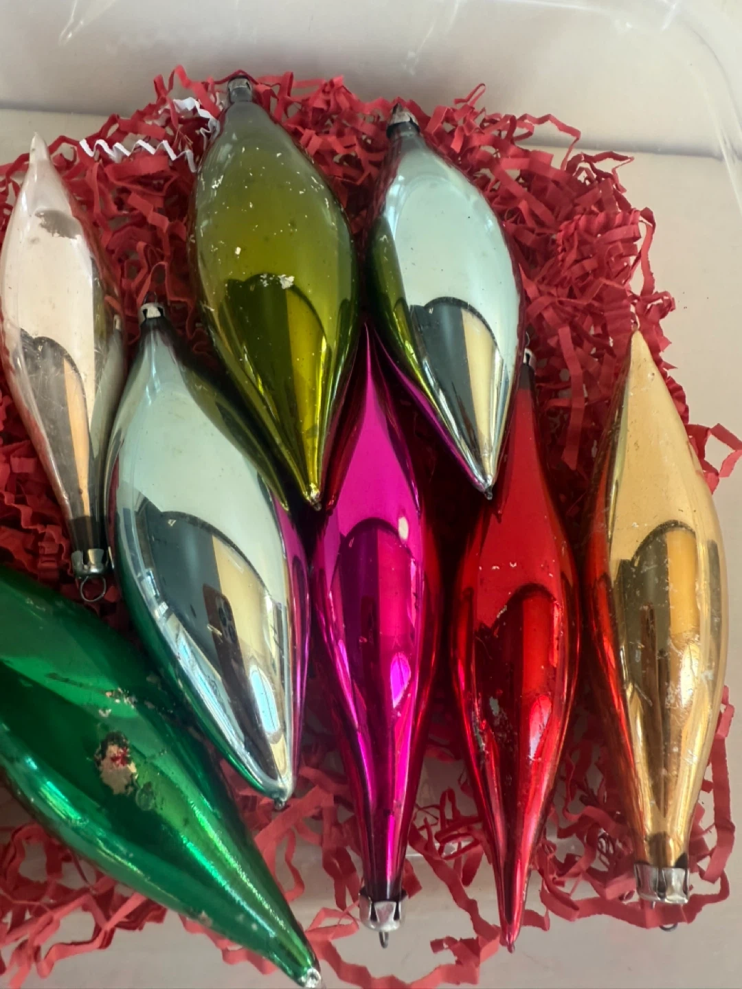 75Selling a set of 8 vintage glass Christmas ornaments! They come in a variety of colours including silver, green, pink, red and gold. Perfect for adding a touch of retro charm to your holiday decor! Vintage wear noted. Cash and pick up only in W. Hillhurst NW. Thanks for looking!