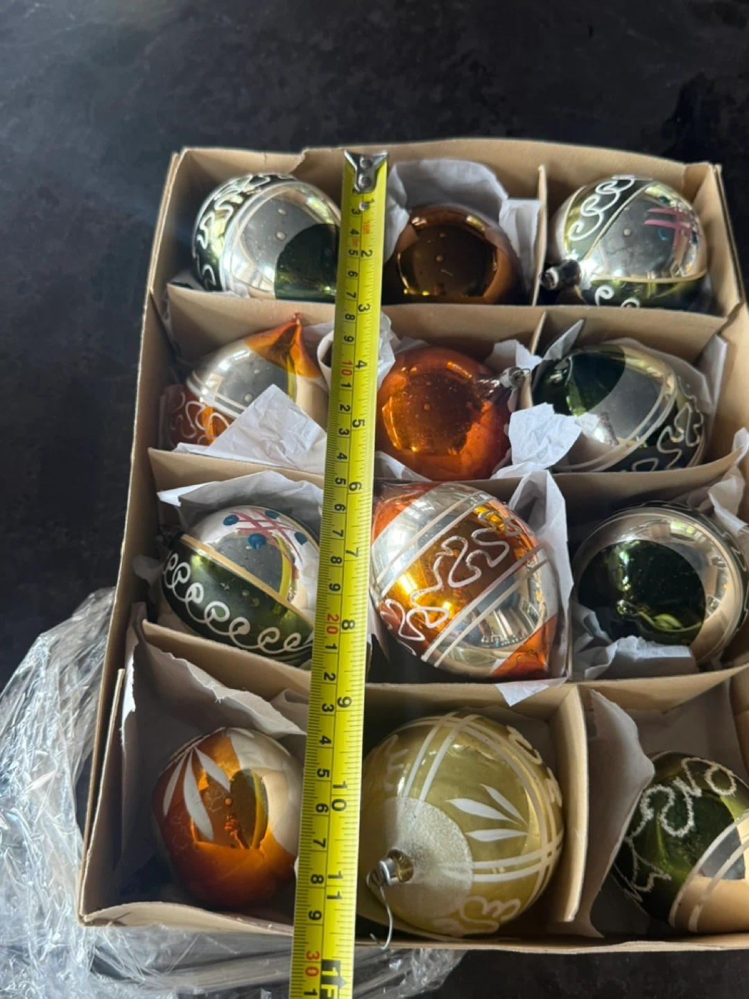 75Selling a set of 12 vintage (Germany?) Christmas ornaments! They are on the larger side and all are in good vintage condition. Perfect for adding a touch of retro charm to your tree this holiday season. Please see photos for size & condition. Cash and pick up only in W. Hillhurst NW. Thanks for looking!