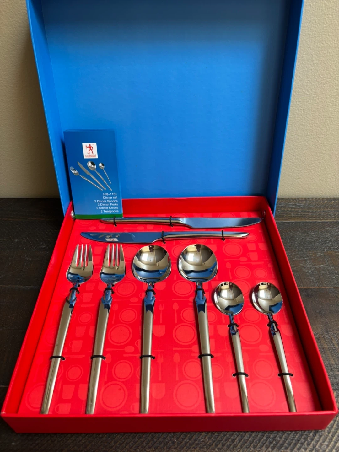 Selling a J.A. Henckels International dinner set, complete with its original box, but box a bit damaged. Selling it for $55