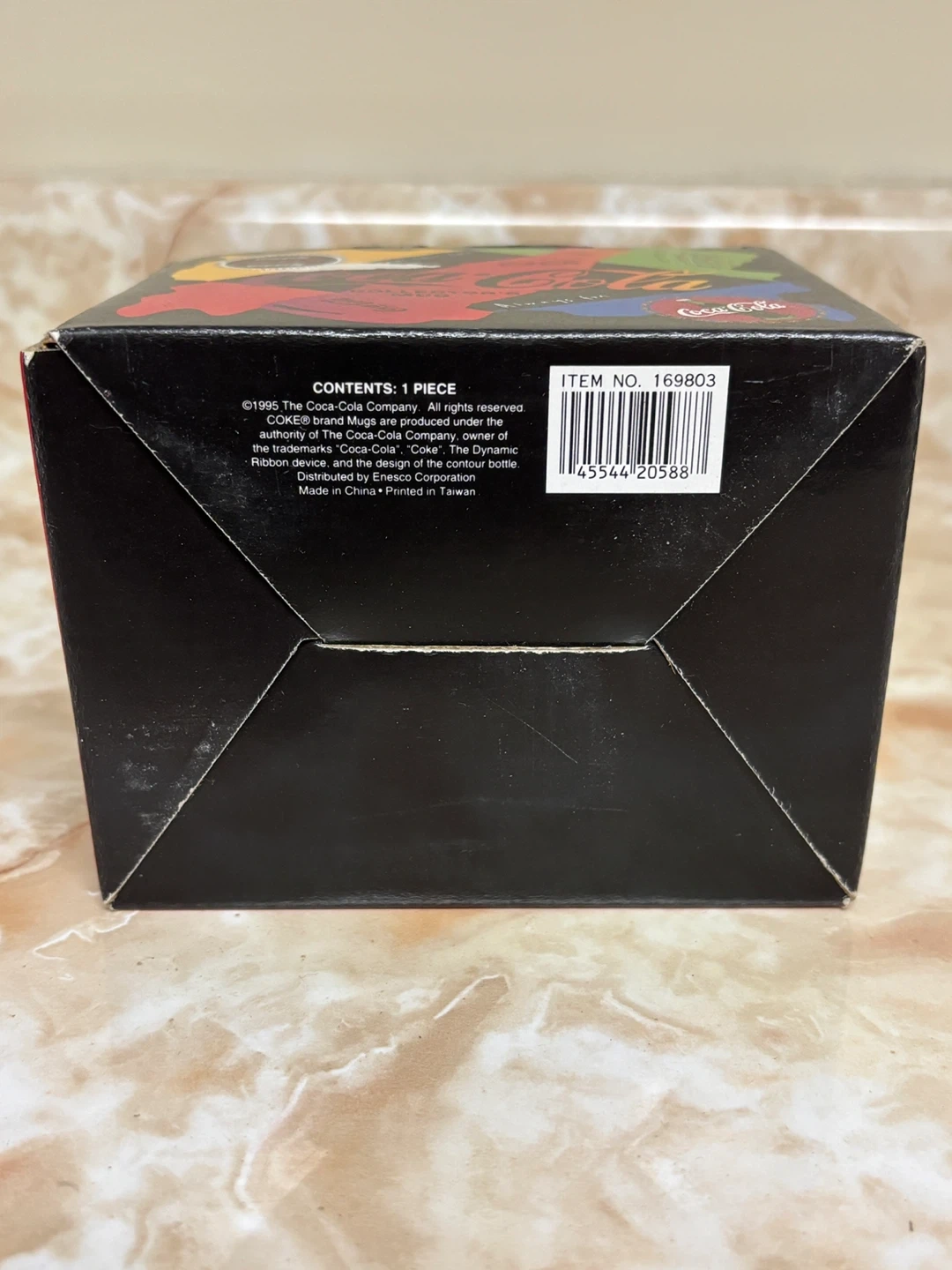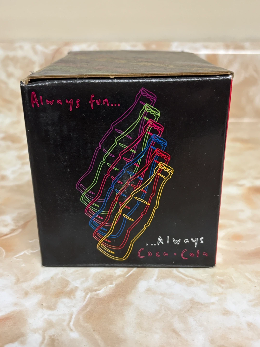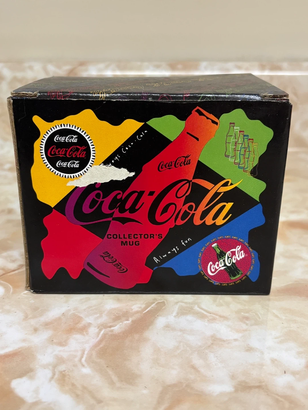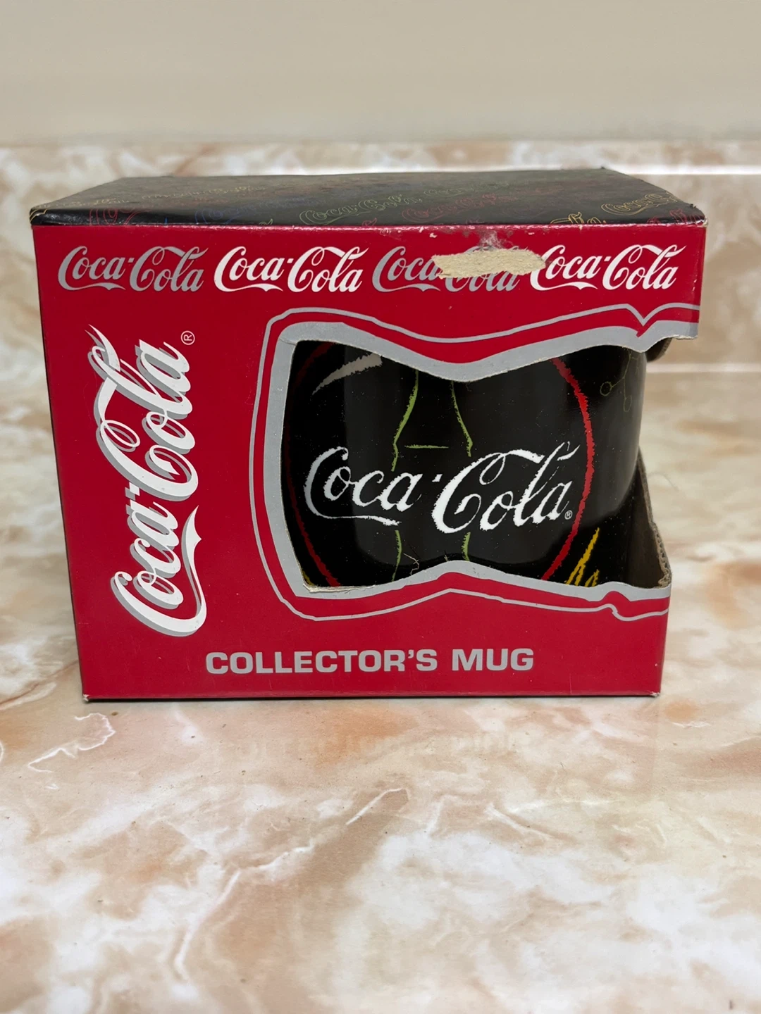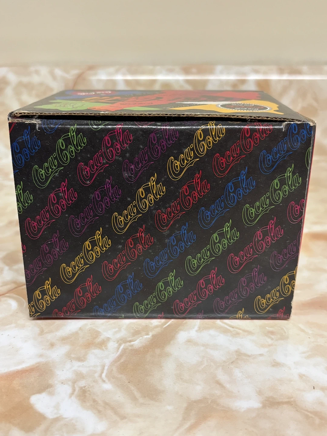 Selling a Coca-Cola collector's mug from 1995! It comes in its original box, featuring colourful designs and the classic Coca-Cola logo. A fun piece for any collector or Coca-Cola enthusiast.