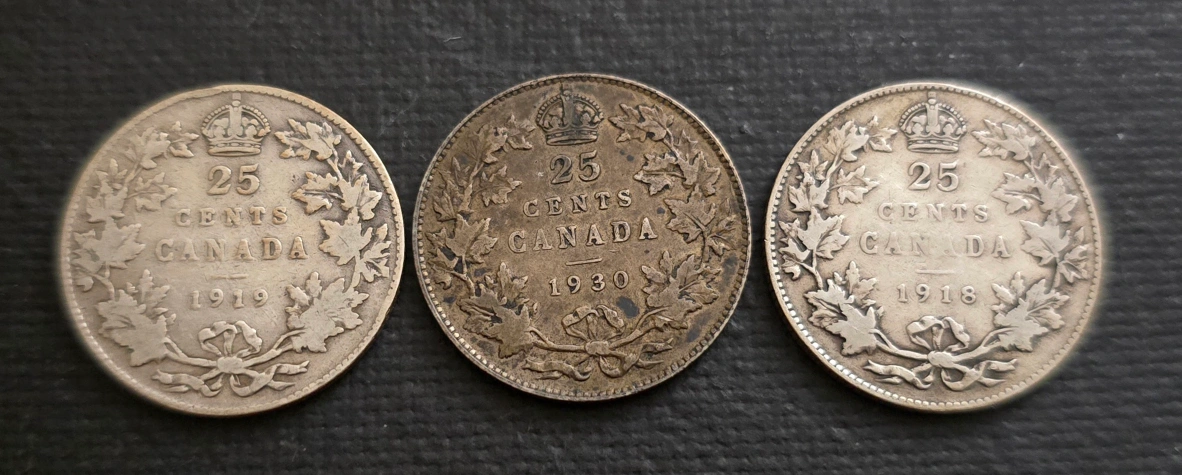 Buy & SellVintage silver Canadian 25 Cent CoinsVintage silver Canadian 25 Cent Coins$55Vintage silver Canadian 25 cent coins for sale. They are dated 1918, 1919, and 1930. They would make a great addition to any coin collection!WHERE TO MEET4 silver maple crtView MapSELLERverifiedJoshuaBramalea18714 reviews1 chats·0 favorites·69 viewsSEND CHAT TO SELLERHi Joshua! I’m interested in your listing.Hi Joshua! I’m interested in your listing.Get the Karrot app to chatSign In to chat