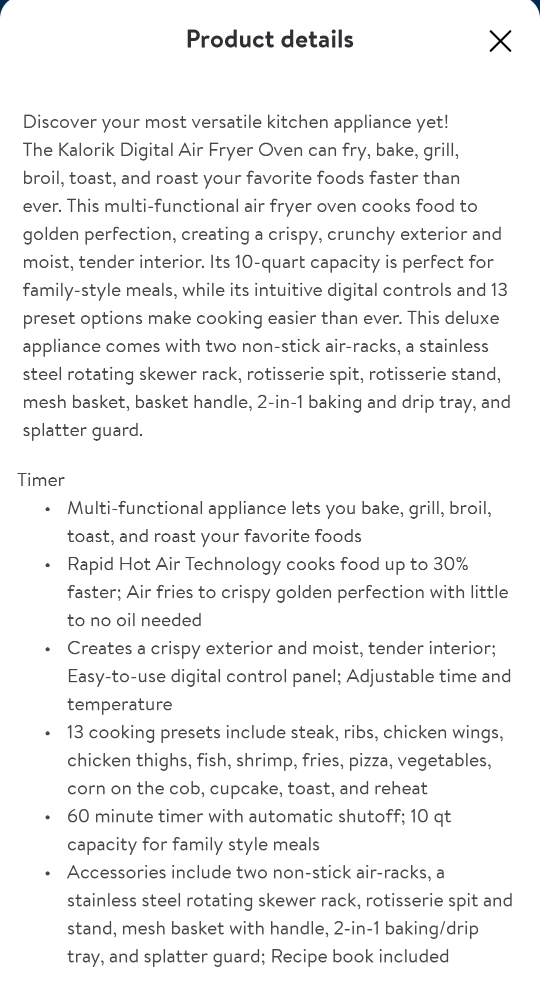 Selling new open box Kalorik air fryer oven. Perfect for cooking up your favourite meals.