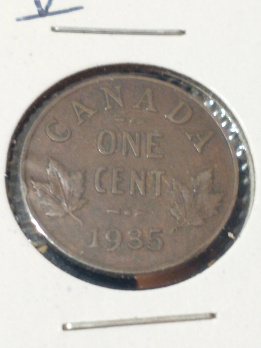 190Selling a Canadian one cent coin from 1935. It features the text 'Canada One Cent 1935' on one side and a portrait of King George on the other.