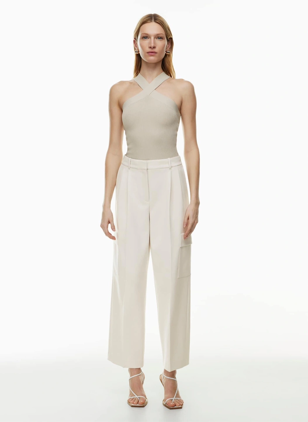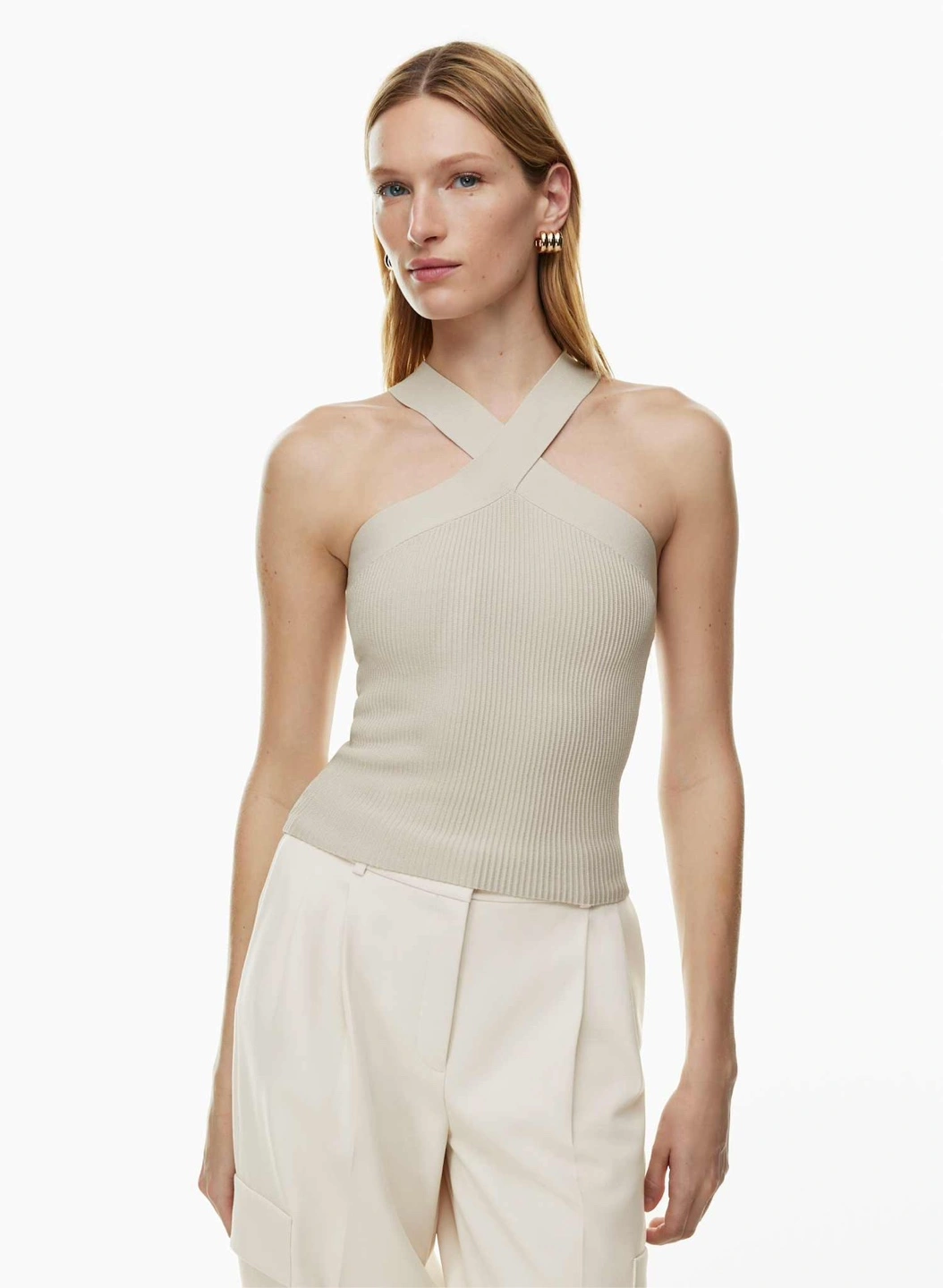 Aritzia Babaton Sculpt Knit Criss Cross Tank | Matte Pearl