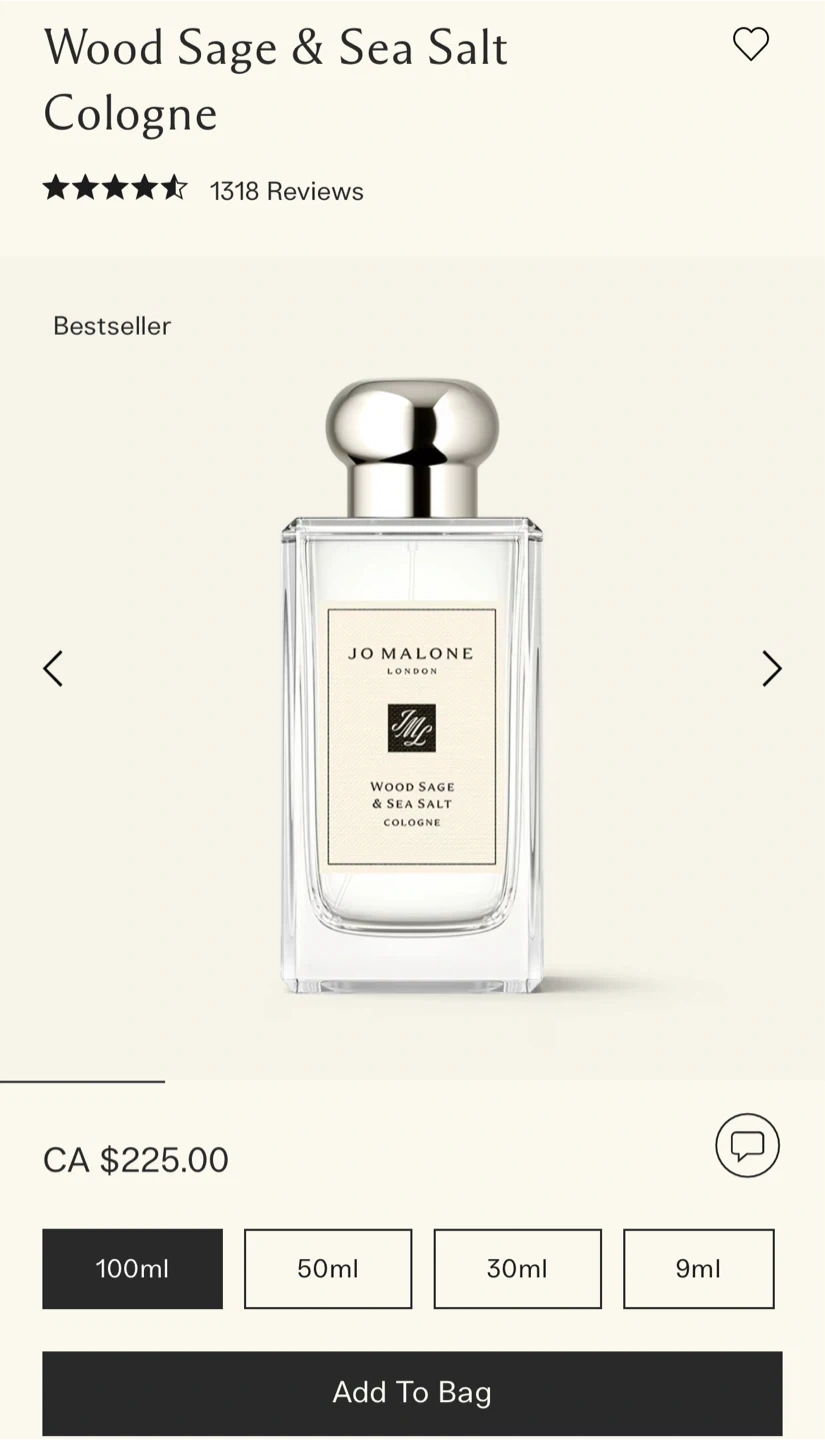 (Originally $255) New Jo Malone Wood Sage & Sea Salt Cologne