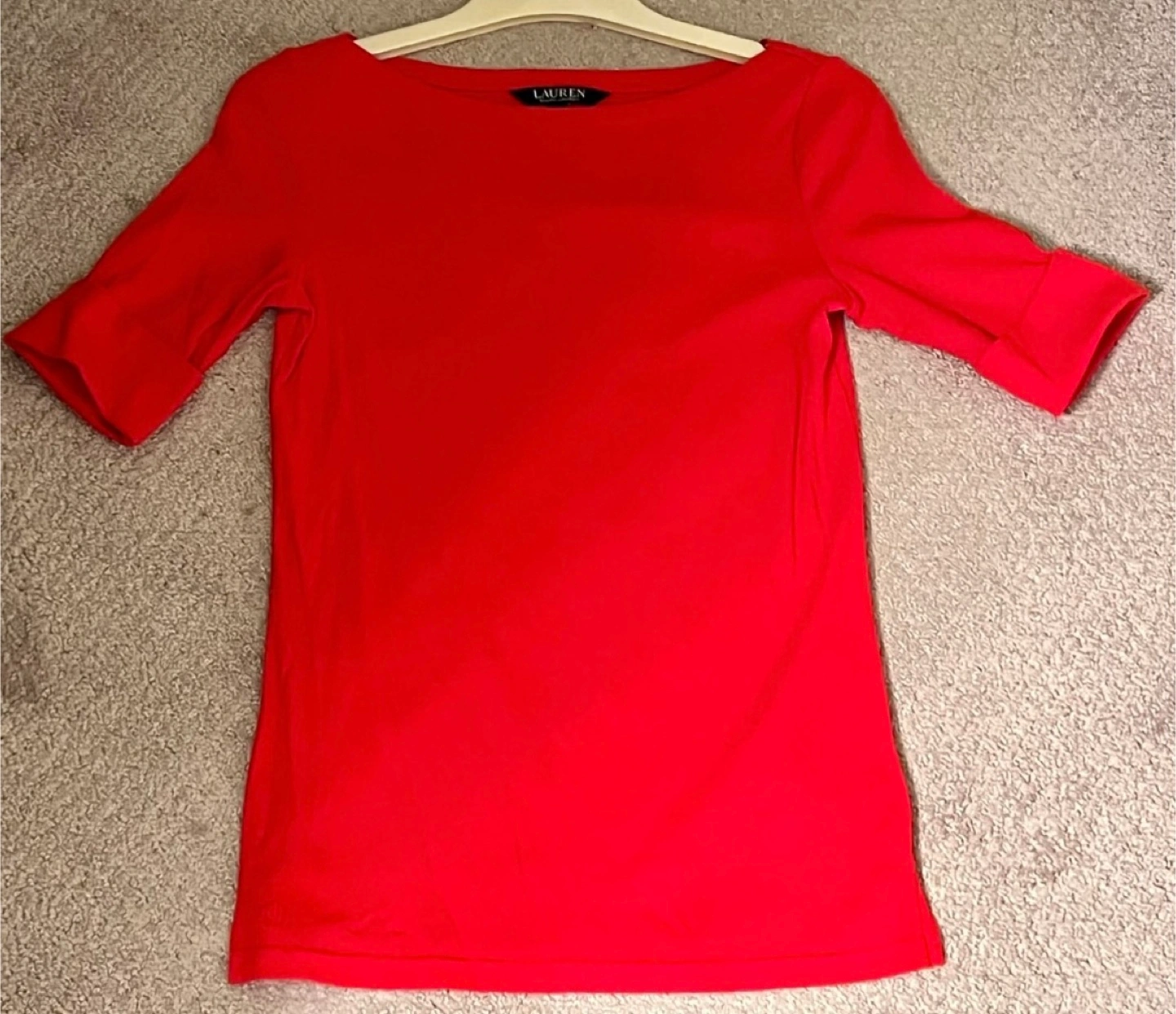 Selling a Ralph Lauren top in a vibrant red colour! It's a size medium and in great condition. Perfect for adding a pop of colour to your wardrobe!