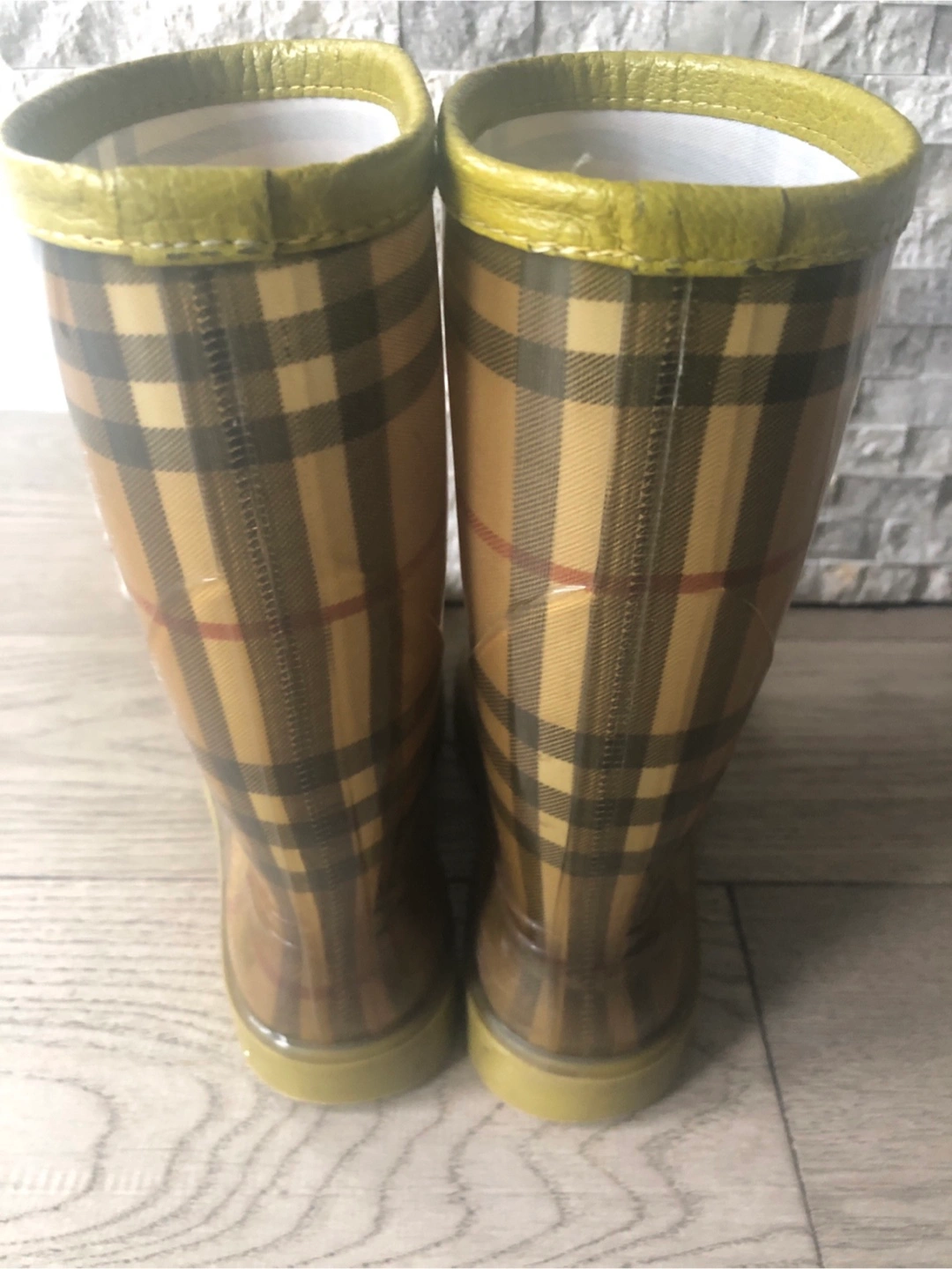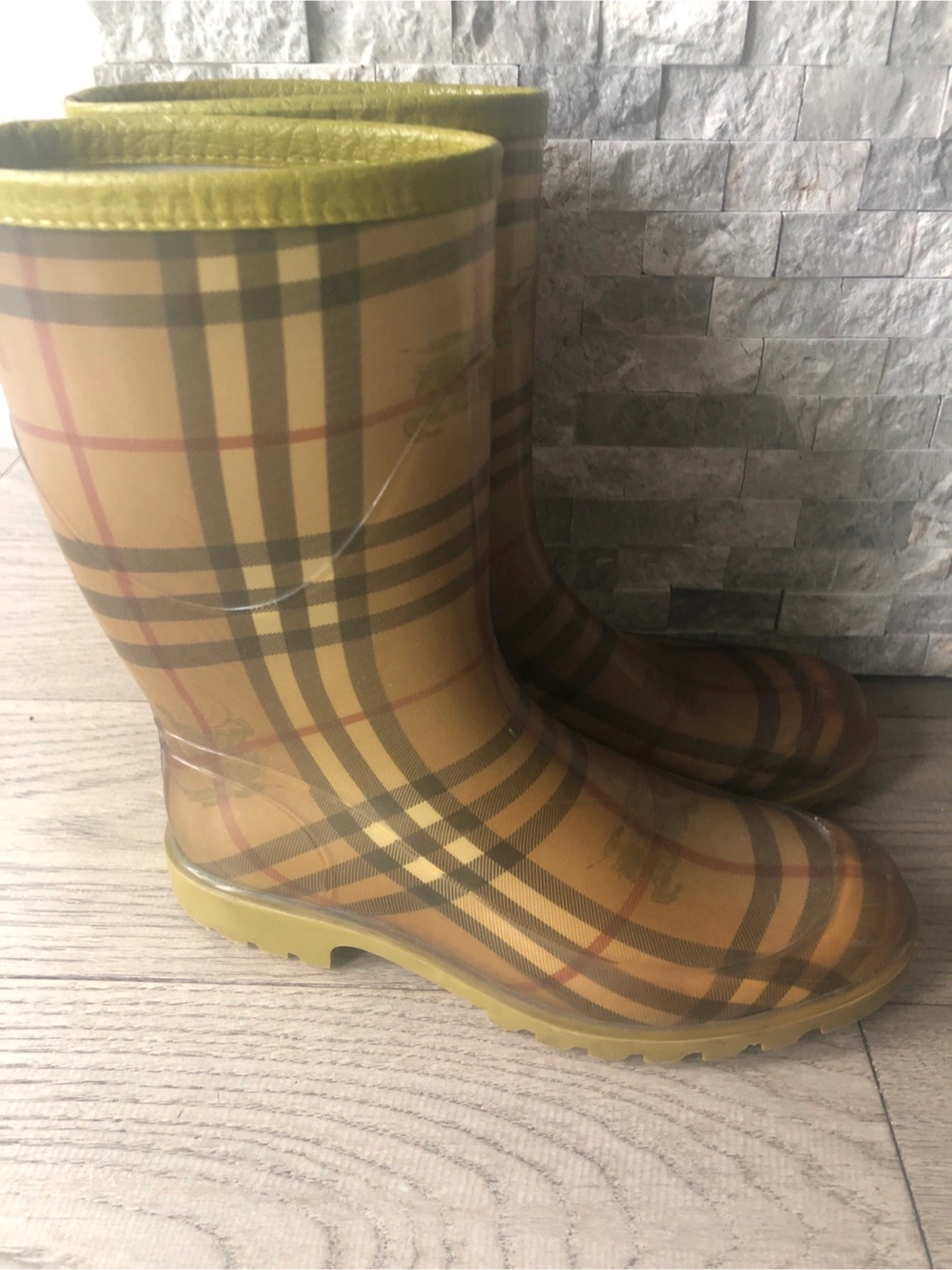 66Selling a pair of Burberry rain boots in a classic plaid pattern! They're in good condition and perfect for keeping feet dry on rainy days. The size is 38.