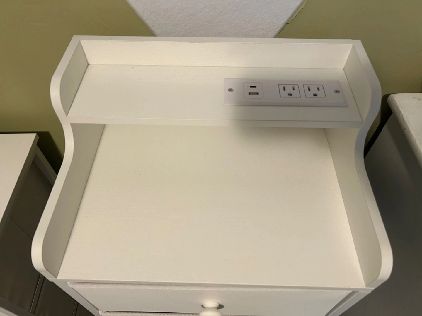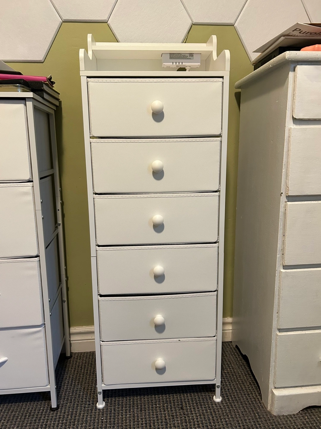 723Selling a cute white dresser with six drawers! The drawers are made of fabric and faux leather. The frame is made of metal with a wooden top. It's in great shape and would be perfect for a bedroom or closet. It even has a built-in USB port and outlets on the top shelf for charging your devices. It cost me over $100 on amazon. Pickup is near College and Bathurst.