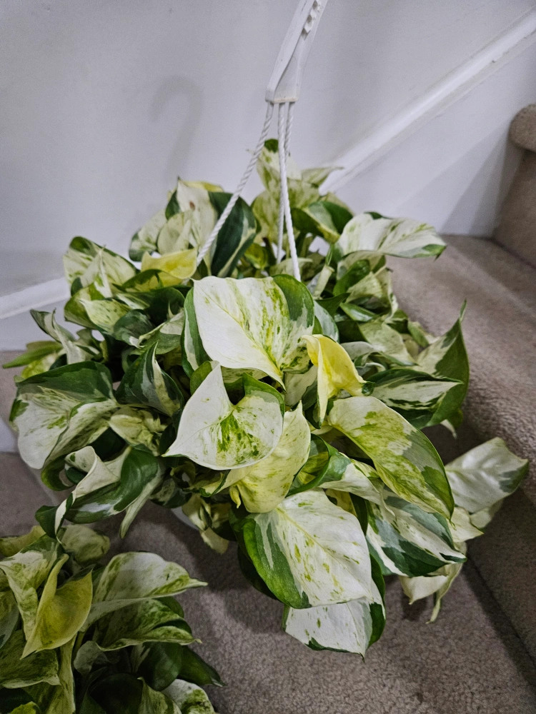 Selling a lovely manjula pothos plant! It's a great way to add some greenery to your space and is super easy to care for. The leaves have a beautiful marble pattern with shades of green and white. Perfect for beginners or plant enthusiasts alike