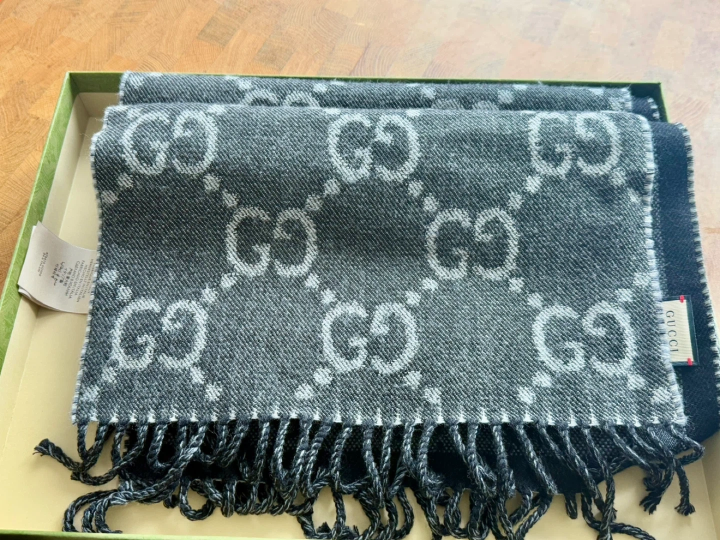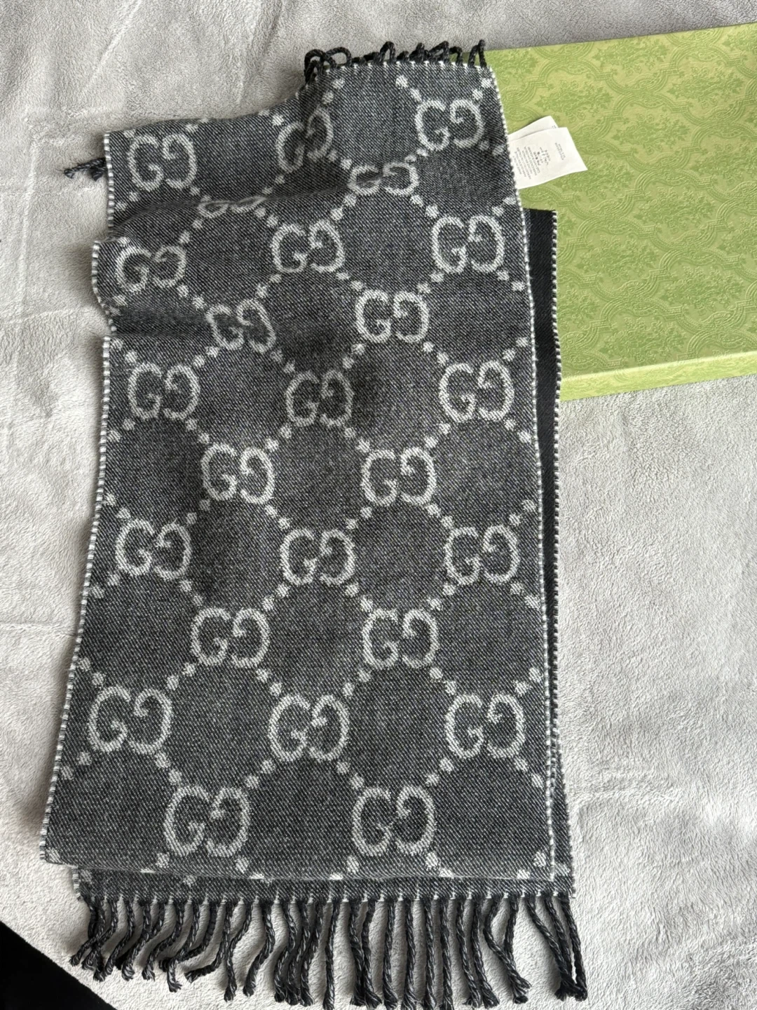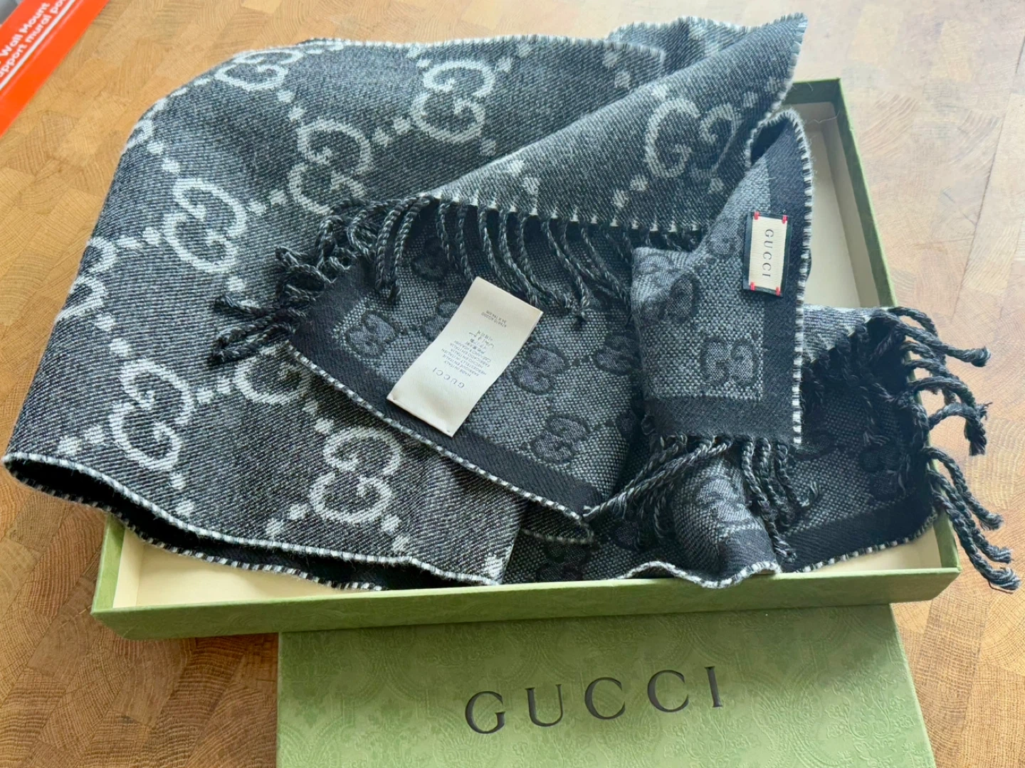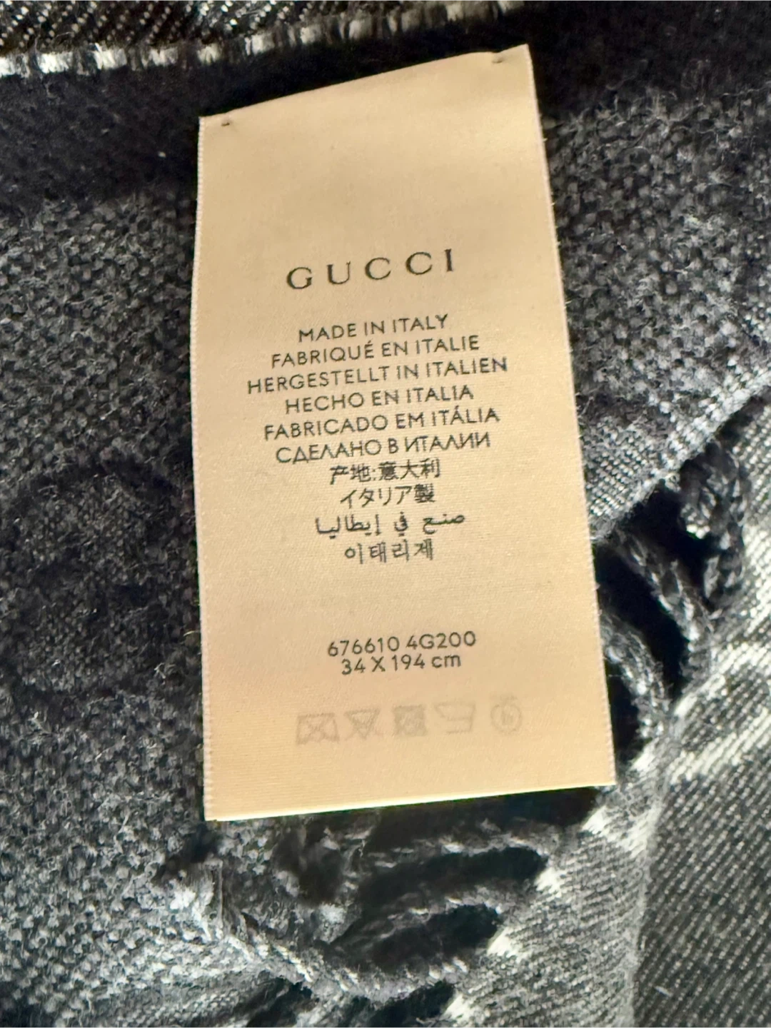 Gucci GG WOOL JACQUARD SCARF Authentic. Model 676610 4G200. Size: 76x13 inch (194x34 cm) Like new condition. Original Box. Location Islington and Bloor